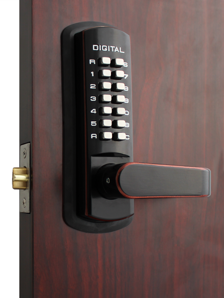 Mechanical, keyless deadlocking spring latch
