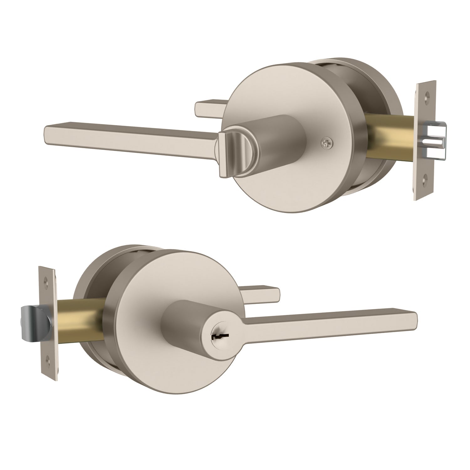 Rosette: RoundLever Length: 5"Screw: CoveredShape: Straight