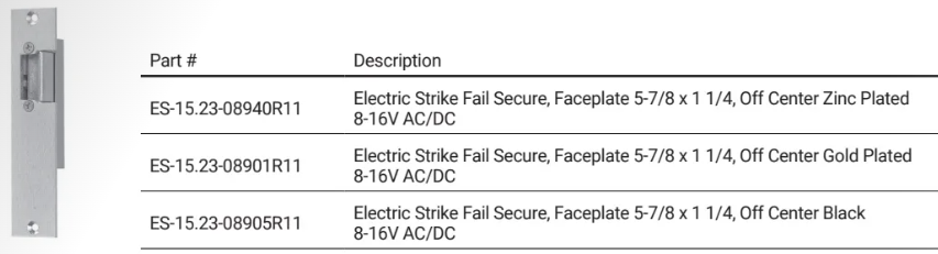 Fail Secure, Faceplate 5-7/8 x 1-1/4, Off Center 8-16V AC/DC