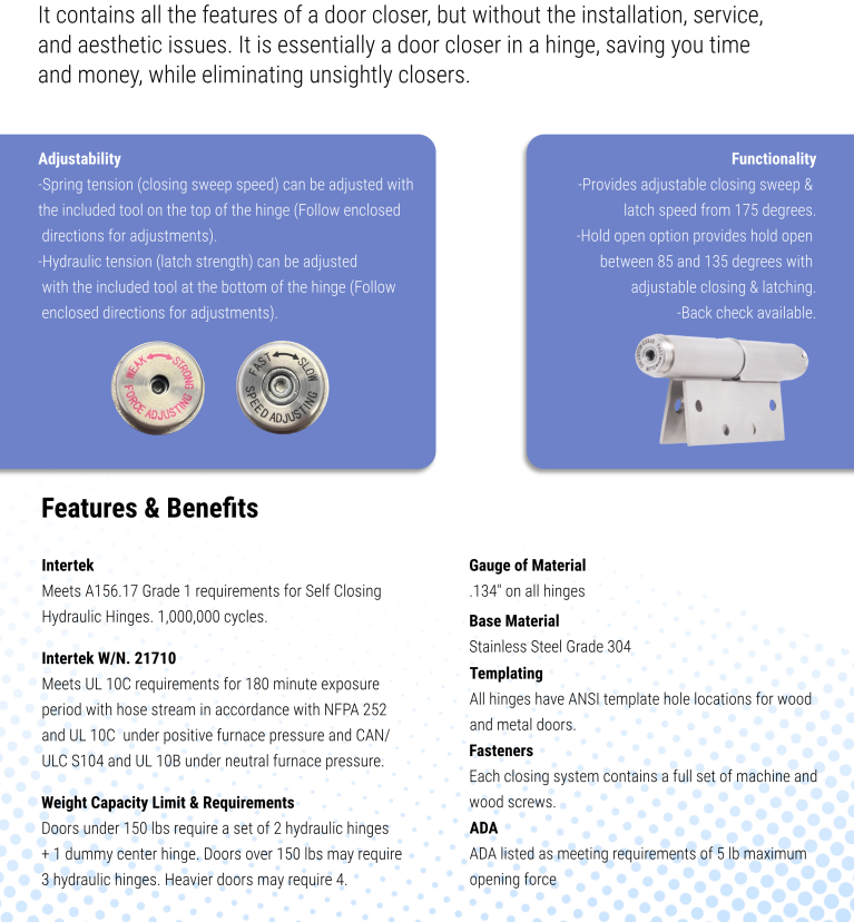 Stainless Steel Left Hand / 40 - 4 Hydrolic / 4" x 4"
