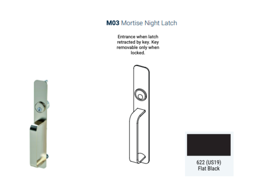- Available in 3 finishes: 613 (US10B), 622 (US19), 630 (US32D).