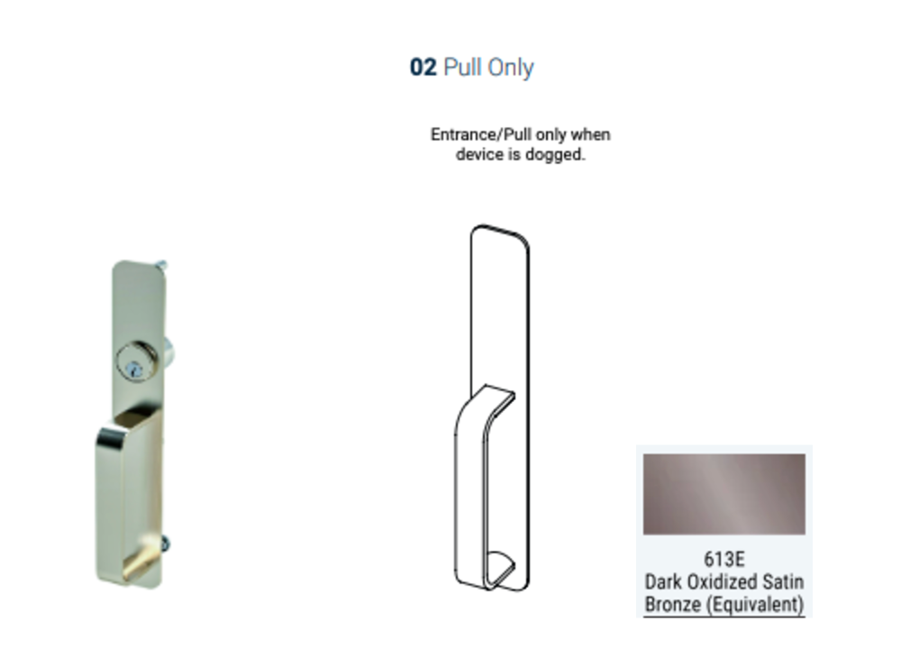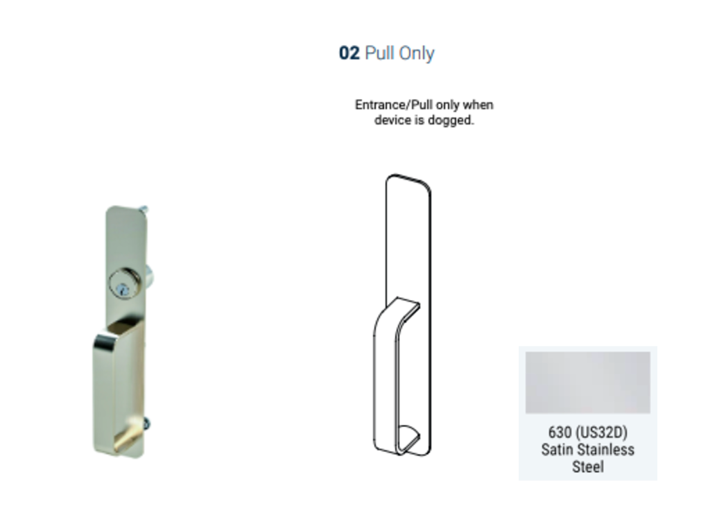The 6GW exit device trim, a premium grip pull door lock.