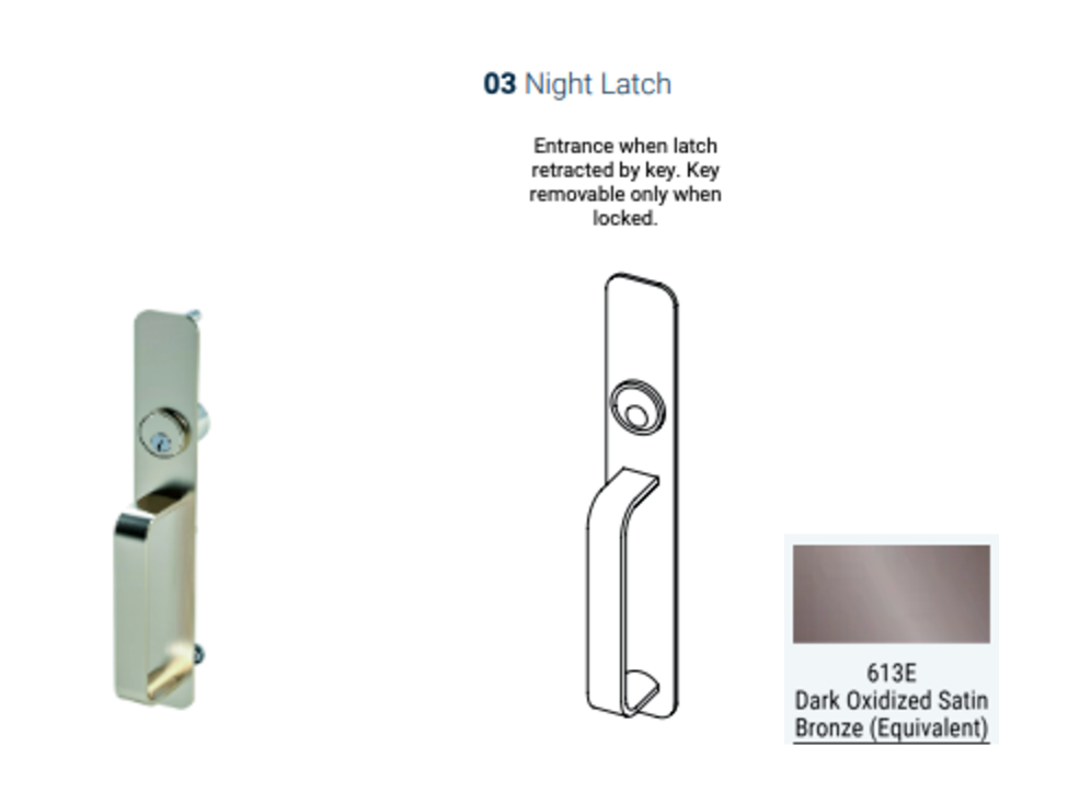 Features Works with 6300 or 6400 device Uses standard rim cylinder Standard, SFIC, and other cylinders available Finish: 613, 622, 630 Escutcheon Size - 2" x 13"