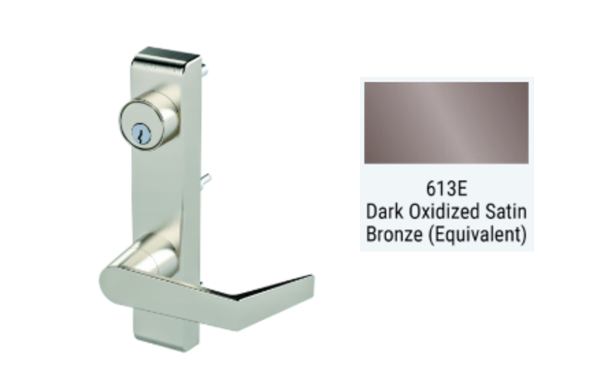 Introducing the 6NM Exit Device Trim, meticulously designed for 6300 or 6400 devices. Offering versatility with 6 lever styles and 6 functions, it perfectly complements narrow stile devices or wide stile devices when a sleeker appearance is preferred. Elevate security with this narrow profile escutcheon, blending style and functionality seamlessly. Ideal for various applications where a refined aesthetic meets uncompromised performance. Connect with a sales rep to unlock a world of possibilities with the 6NM Exit Device Trim, enhancing both security and design in equal measure.