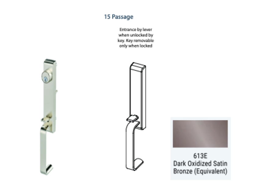 - Available in 3 premium finishes: 613(US10B), 622(US19), 630(US32D)