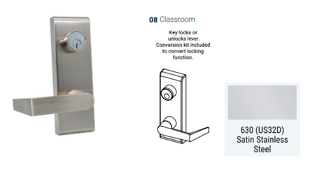 Discover the robust 6WM Exit Device Trim, designed for 6300 devices. With six lever styles and five functions, including electric locking, it offers versatility for various security needs. Ideal for wide stile devices, it provides a substantial aesthetic appeal or retrofitting while covering existing holes. Note: Not compatible with 6400 narrow stile devices. Contact a sales representative to elevate security with PDQ’s durable and versatile 6WM Exit Device Trim for your commercial spaces.
