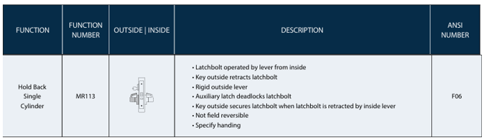 PDQ F Series - MR113 Hold Back Single Cylinder Function Mortise Lock
