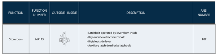 PDQ F Series - MR115 Storeroom Function Mortise Lock