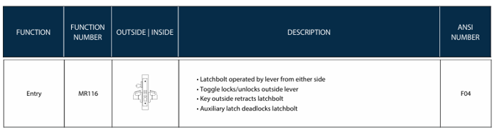 PDQ F Series - MR116 Entry Function Mortise Lock