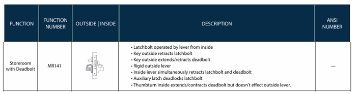 PDQ F Series - MR141 Storeroom with Deadbolt Function Mortise Lock