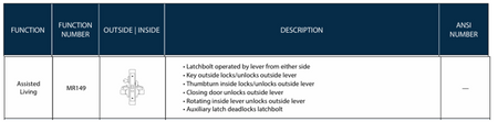 PDQ F Series - MR149 Assisted Living Function Mortise Lock