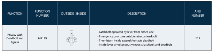 PDQ F Series - MR179 Privacy with Deadbolt and Egress Mortise Lock