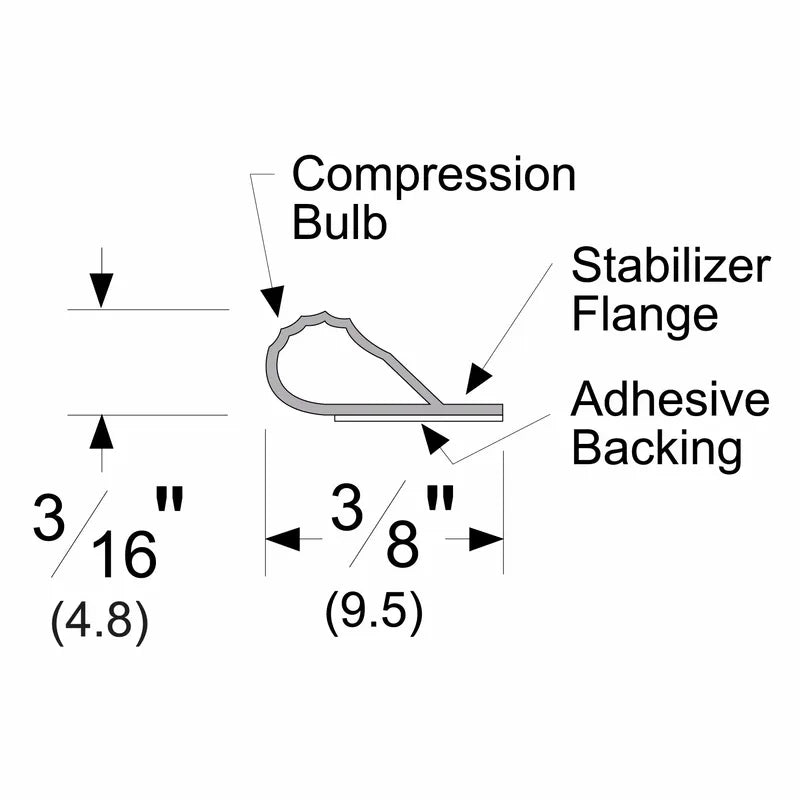 Seal begins compressing at 3/16"; compresses to seal up to a 1/16" gap
