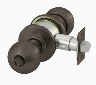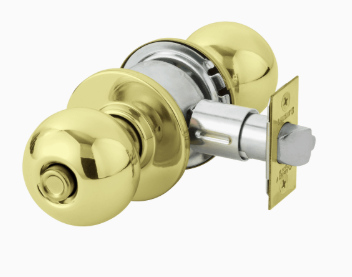 - Latch retracted by either knob unless outside knob is locked by push button in inside knob