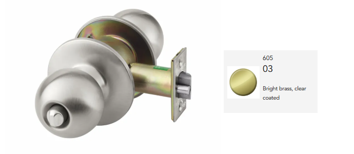 This ANSI/BHMA Grade 1 knob lock is designed and tested for many applications. The versatile design of this line is capable of satisfying all door requirements, allows for easy installation and is available in a number of finishes to match your facility’s existing aesthetic.