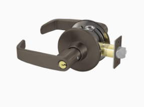 - Latchbolt by either lever unless outside lever is locked by push/turn button in inside lever