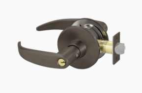 - Latchbolt by either lever unless outside lever is locked by push button of inside lever