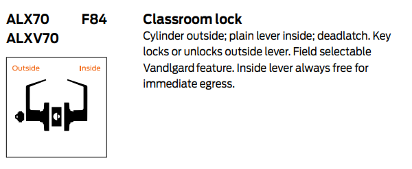 • ALX70 Classroom lock (ANSI F84)