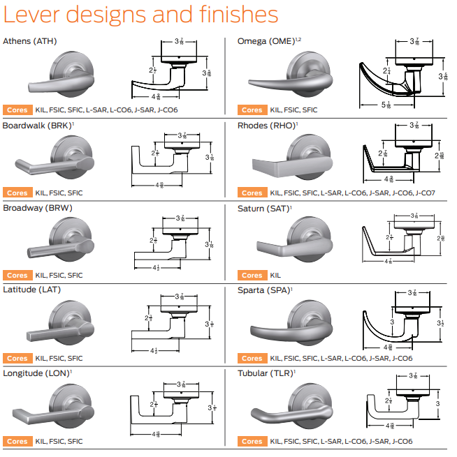 • All levers with a return to door of 1/2" (64 mm) or less comply (Rhodes, Saturn, Sparta, Tubular, Omega, Longitude, and Boardwalk)