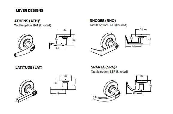 - Available with Schlage’s full complement of key cylinder options including levers designed for compatibility with many other OEM cylinders