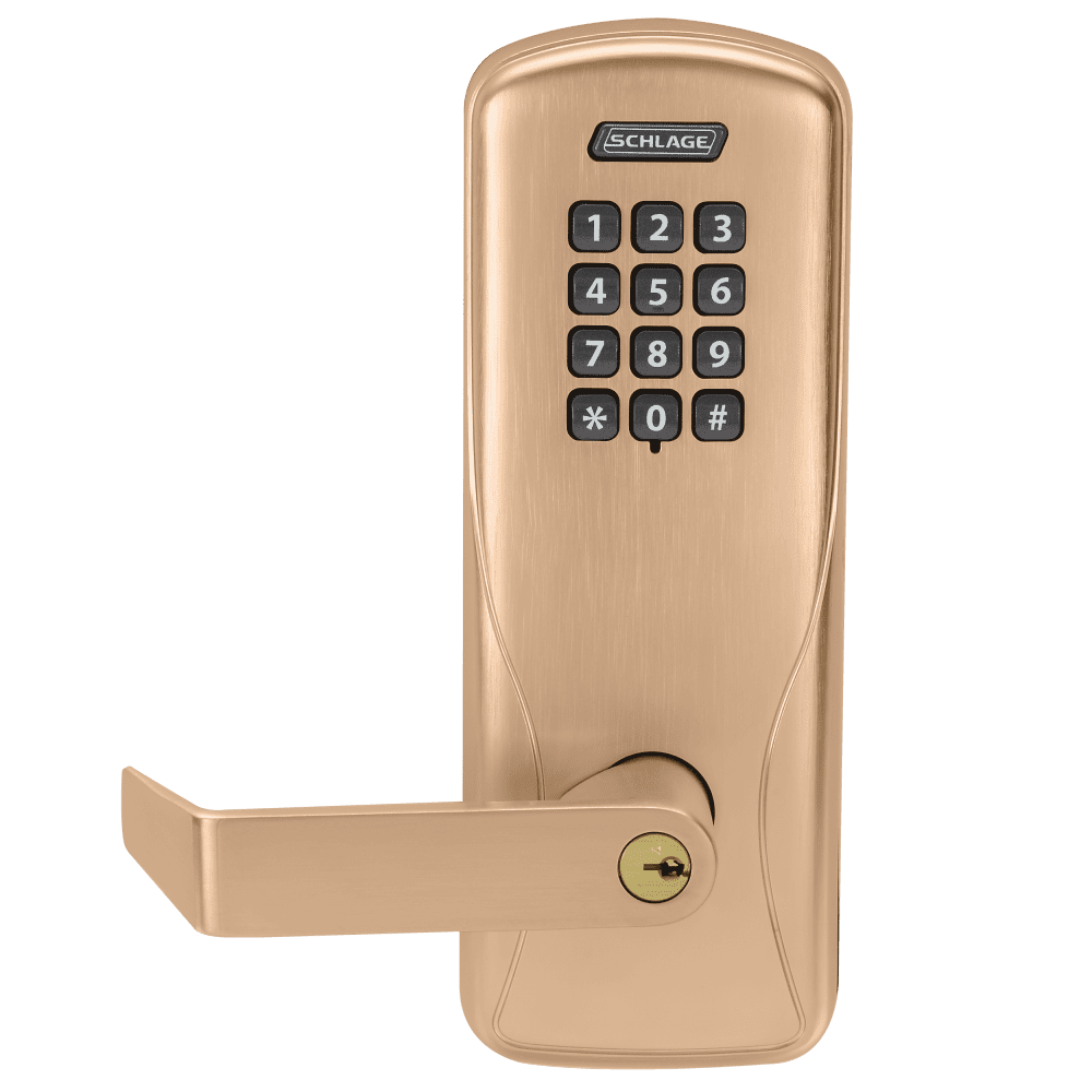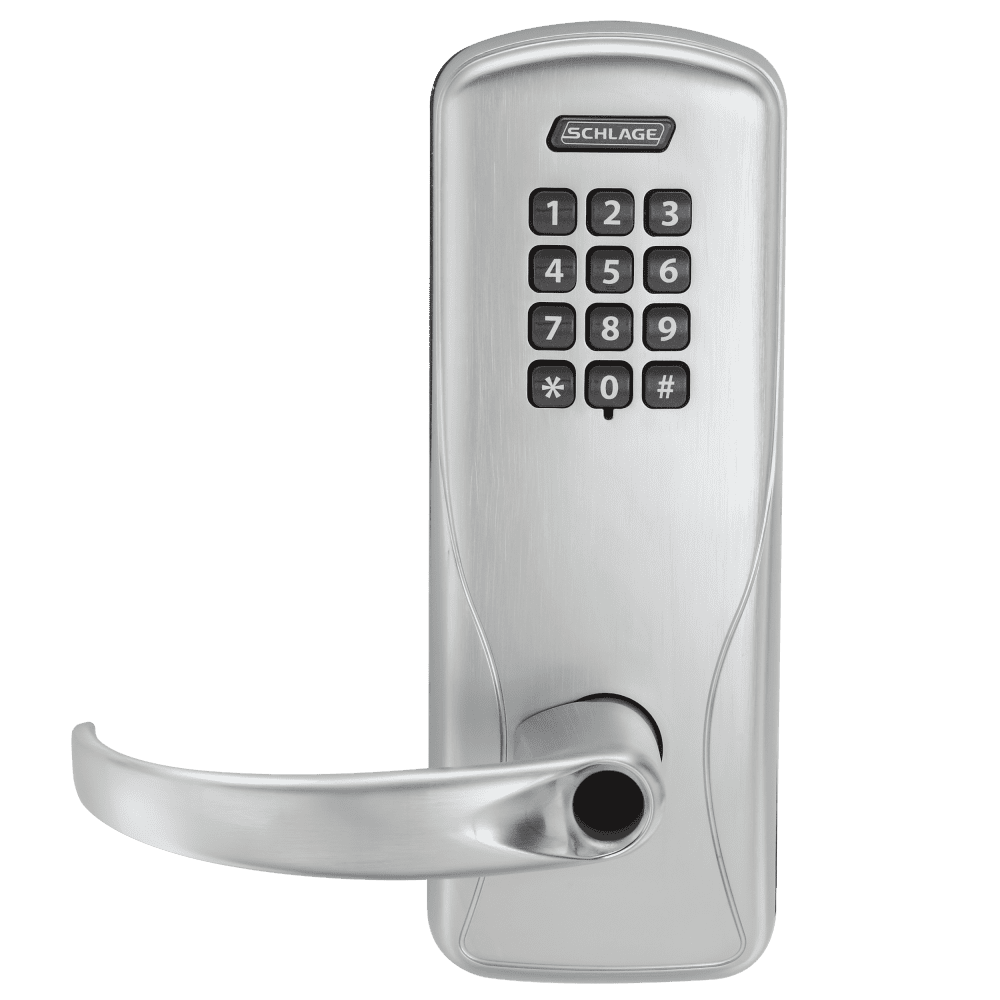 The CO-100 from Schlage is versatile enough to use anywhere. In the classroom/storeroom function, it is rated full outdoor and can be used for
