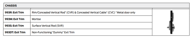 • Less cylinder options to fit common Sargent®, Corbin Russwin®, Medeco®, Yale® and Falcon® cylinders