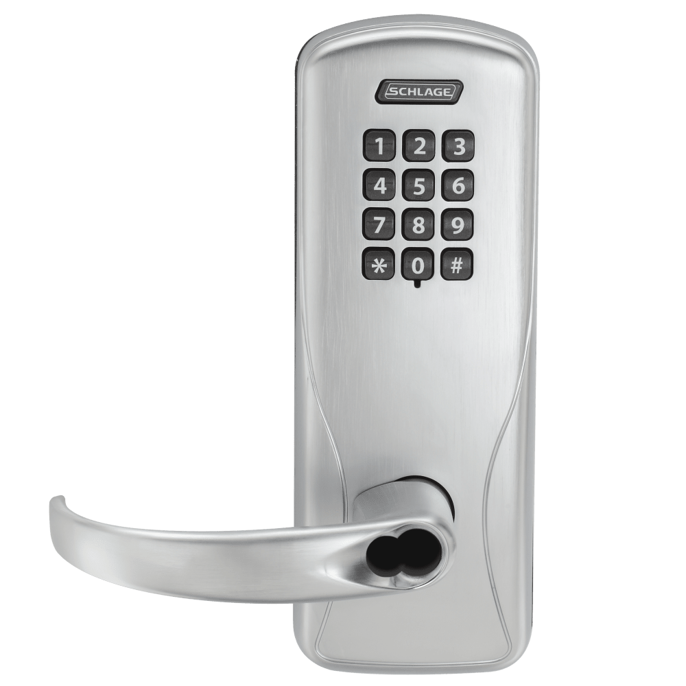The CO-100 from Schlage is versatile enough to use anywhere. In the classroom/storeroom function, it is rated full outdoor and can be used for