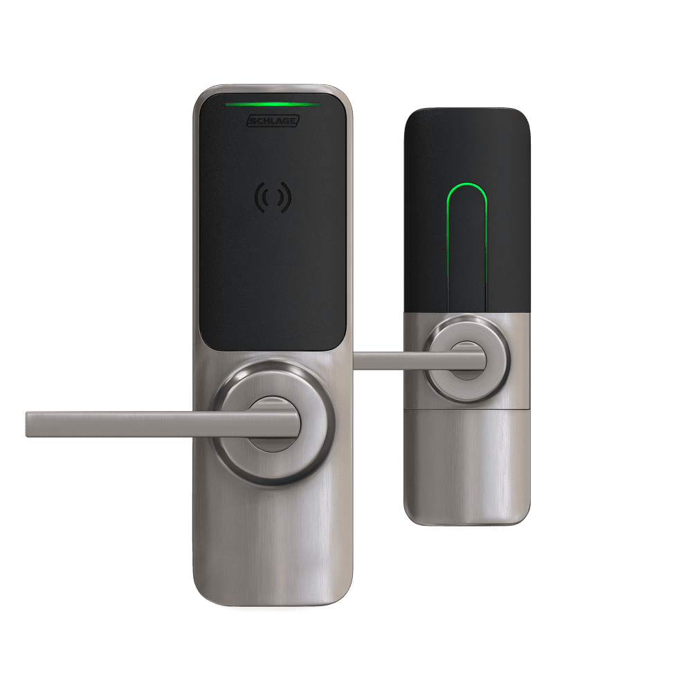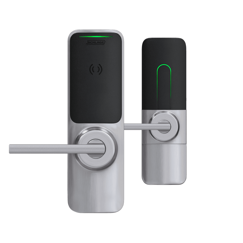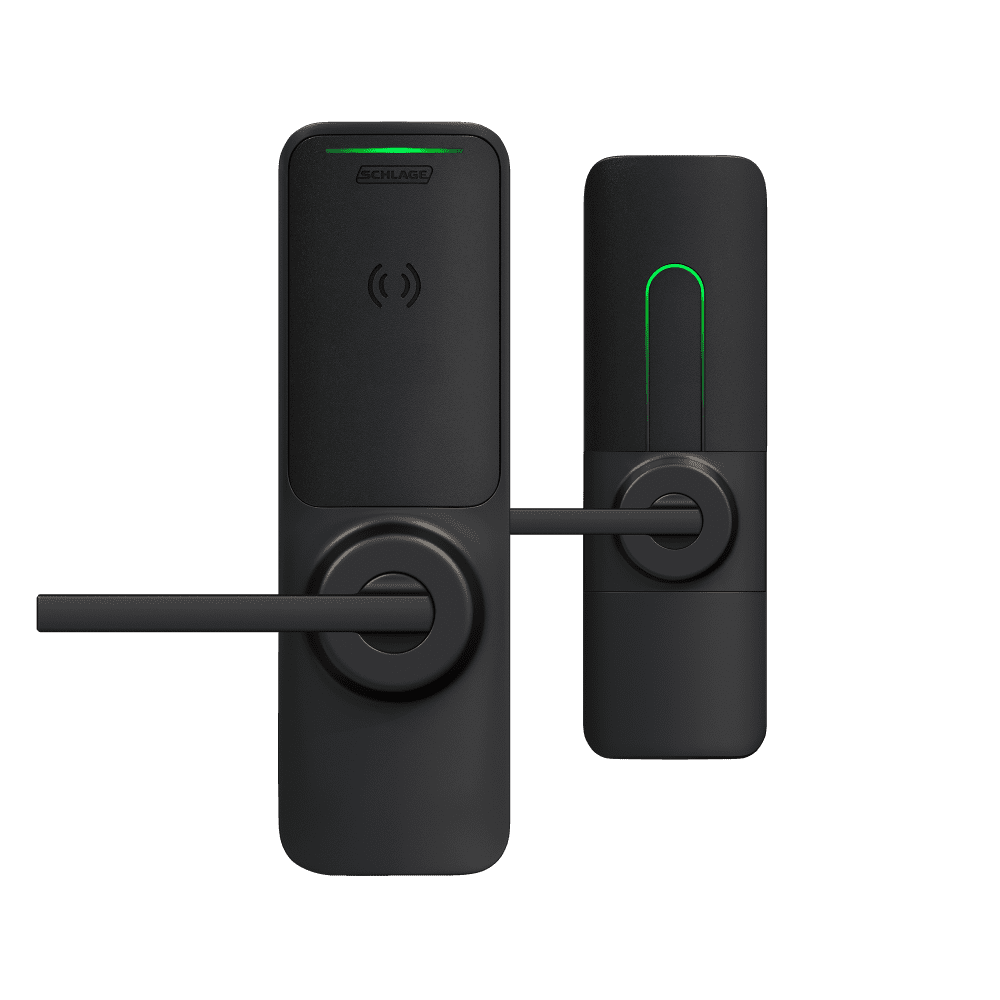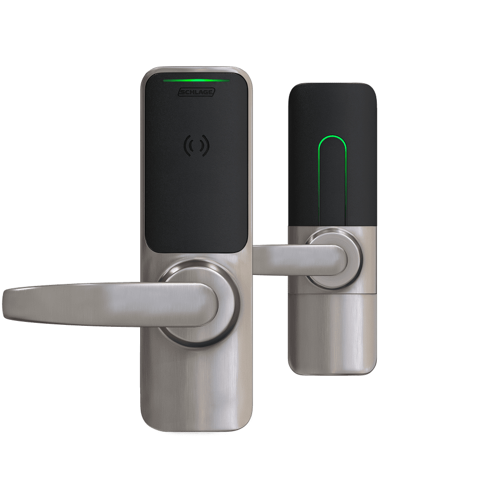 - Credential support includes Schlage MIFARE®, Bluetooth® and NFC mobile1