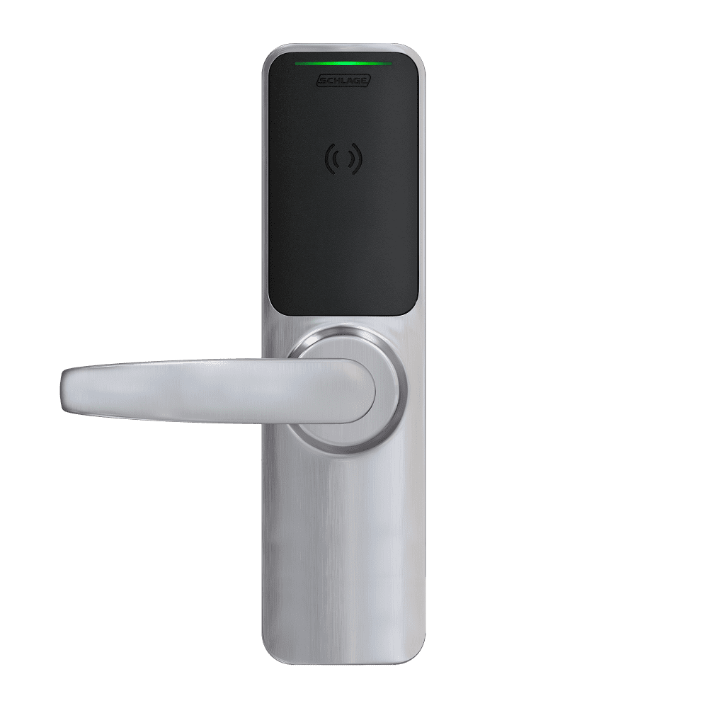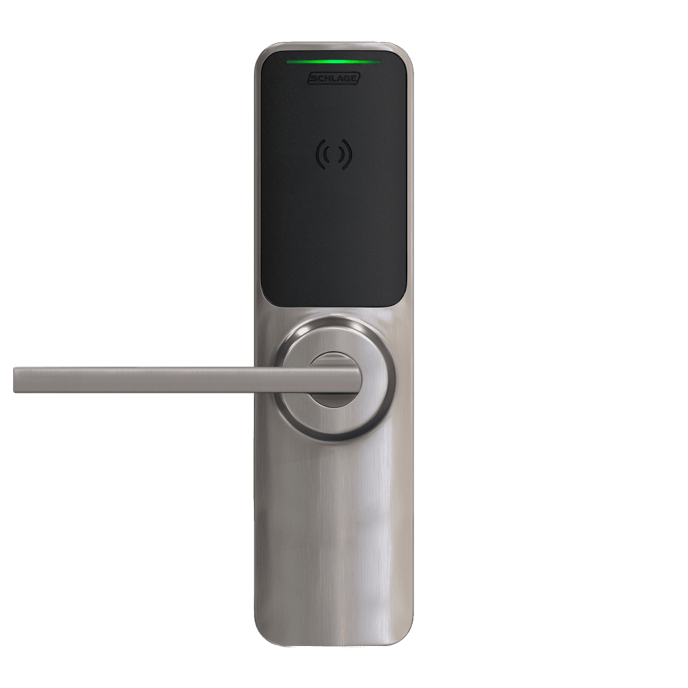 - Credential support includes Schlage MIFARE®, Bluetooth® and NFC mobile1