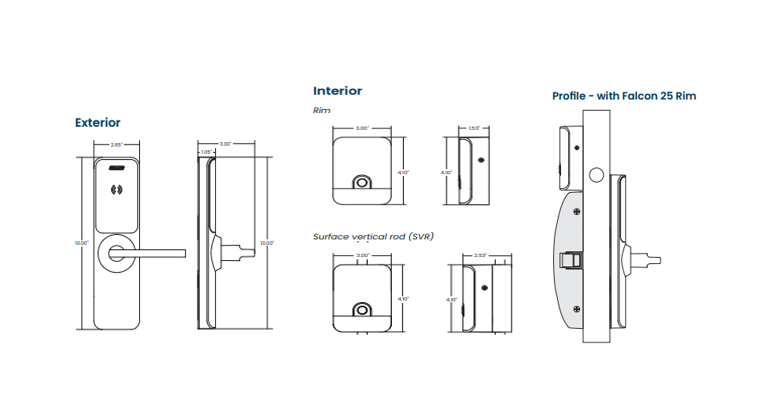 - Available for select rim and surface vertical rod exit devices from Falcon and Von Duprin