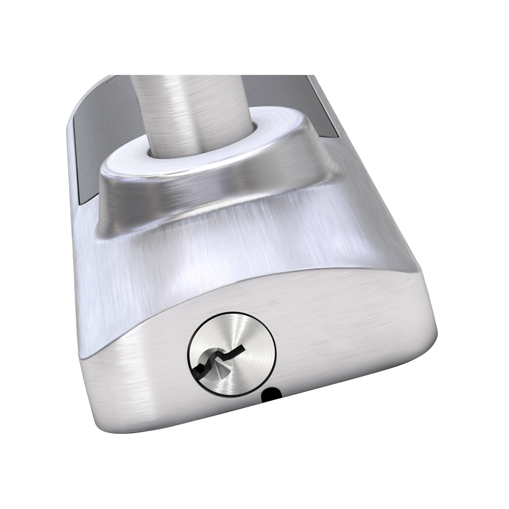 - Utilizes a modular adapter for simple transitions to a wide variety of exit devices
