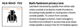 - HL6-9040 Bath/bedroom privacy lock (ANSI F22)