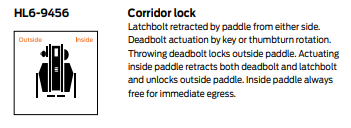 - HL6-9456 Corridor lock with deadbolt (ANSI F13) and optional key override feature
