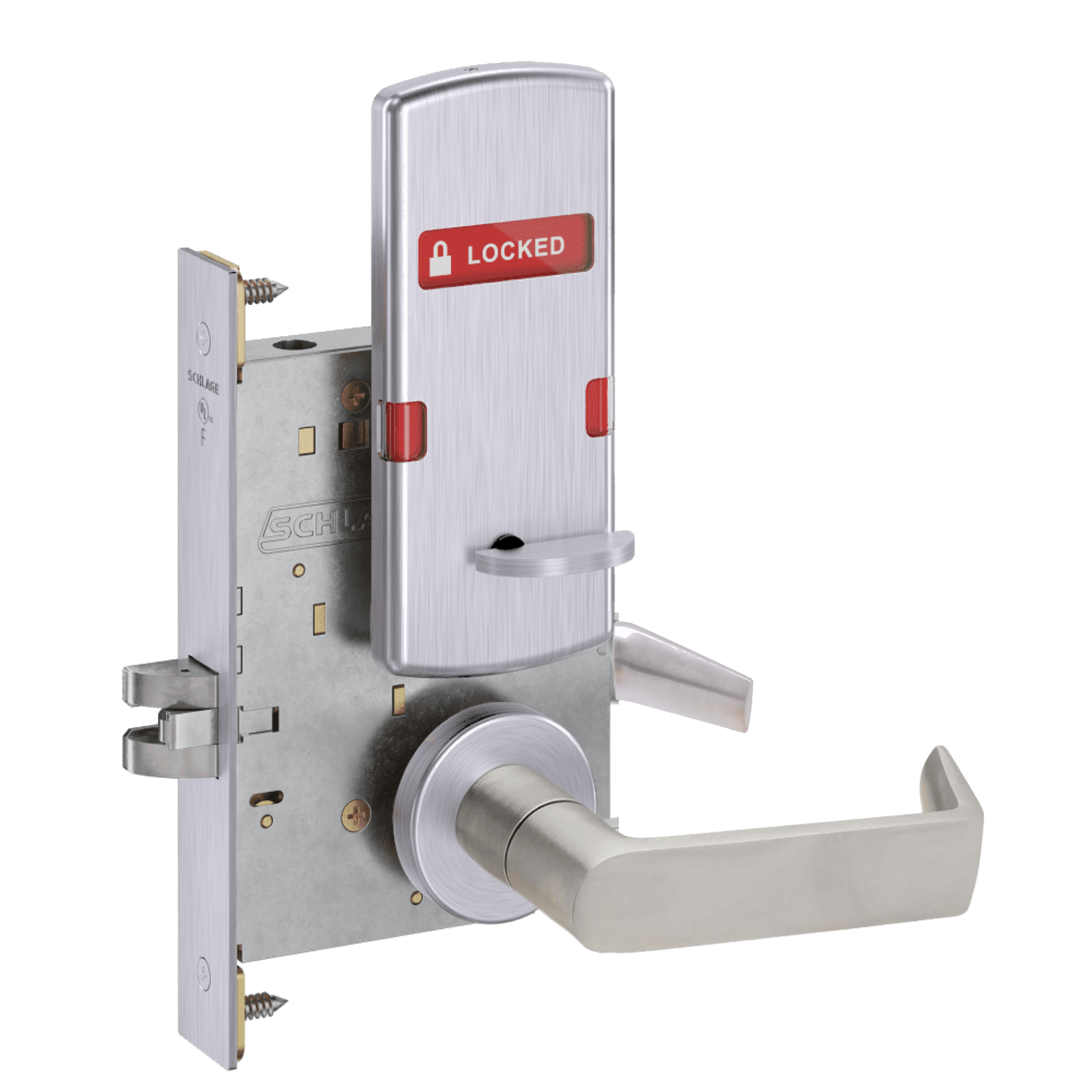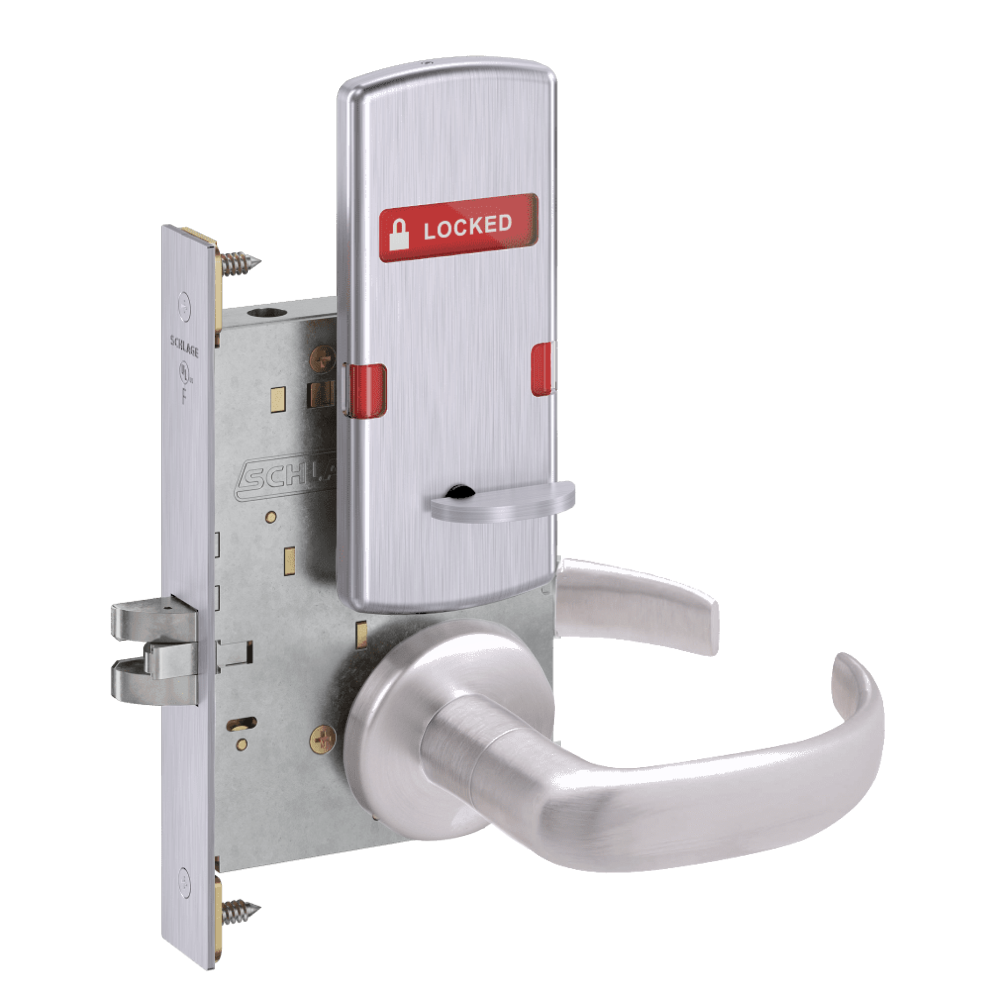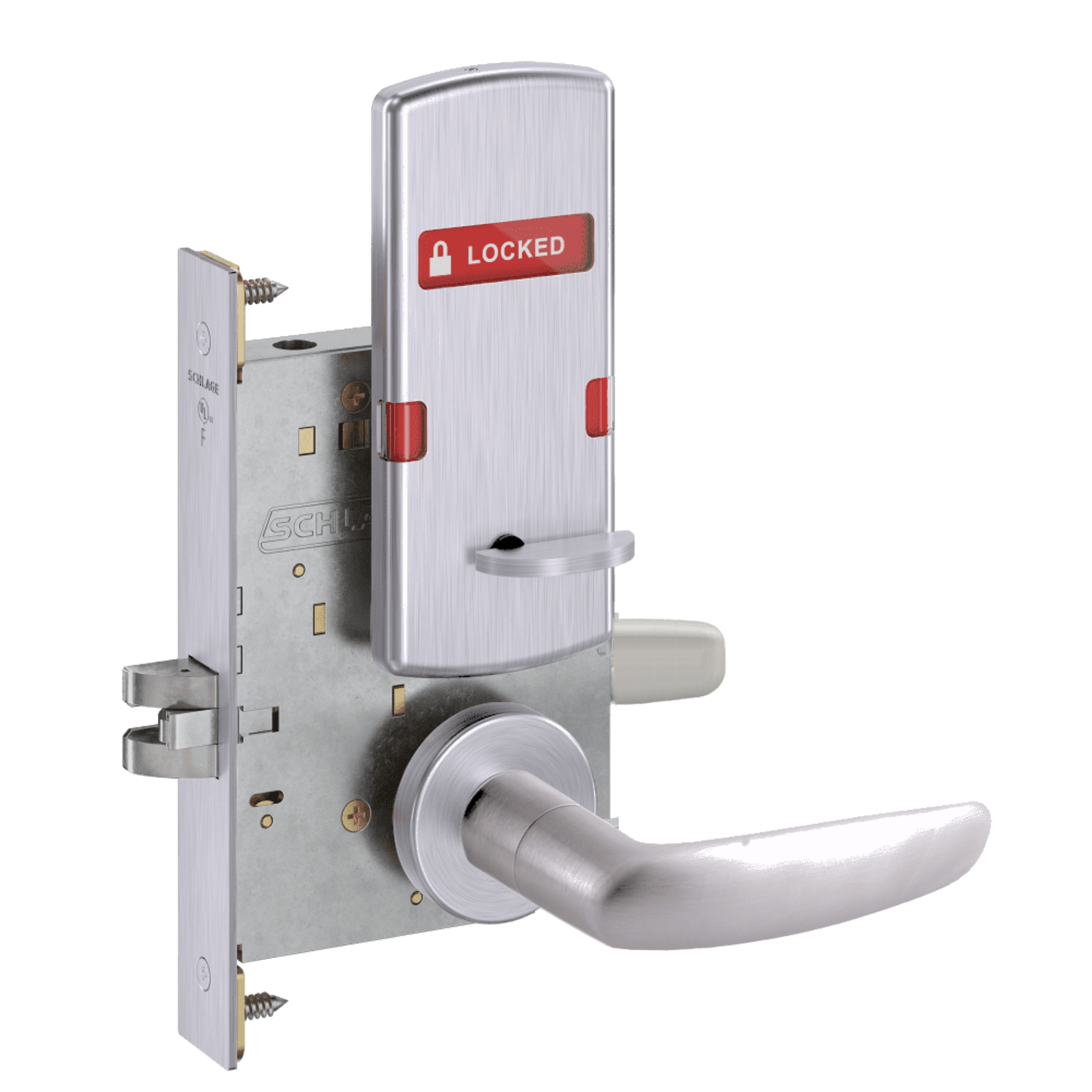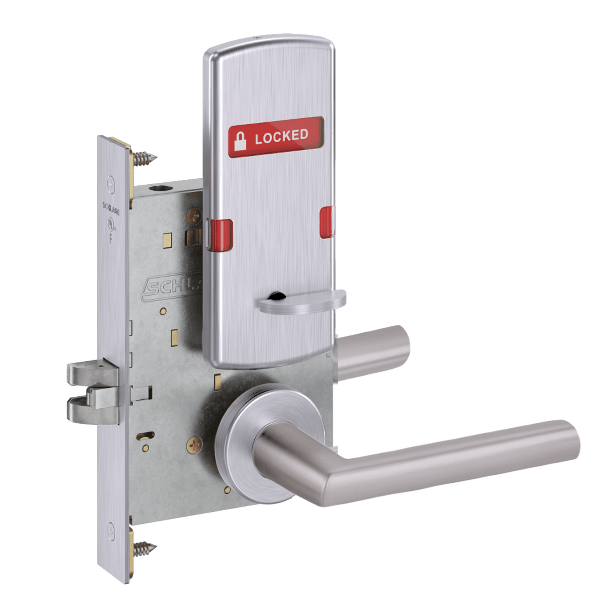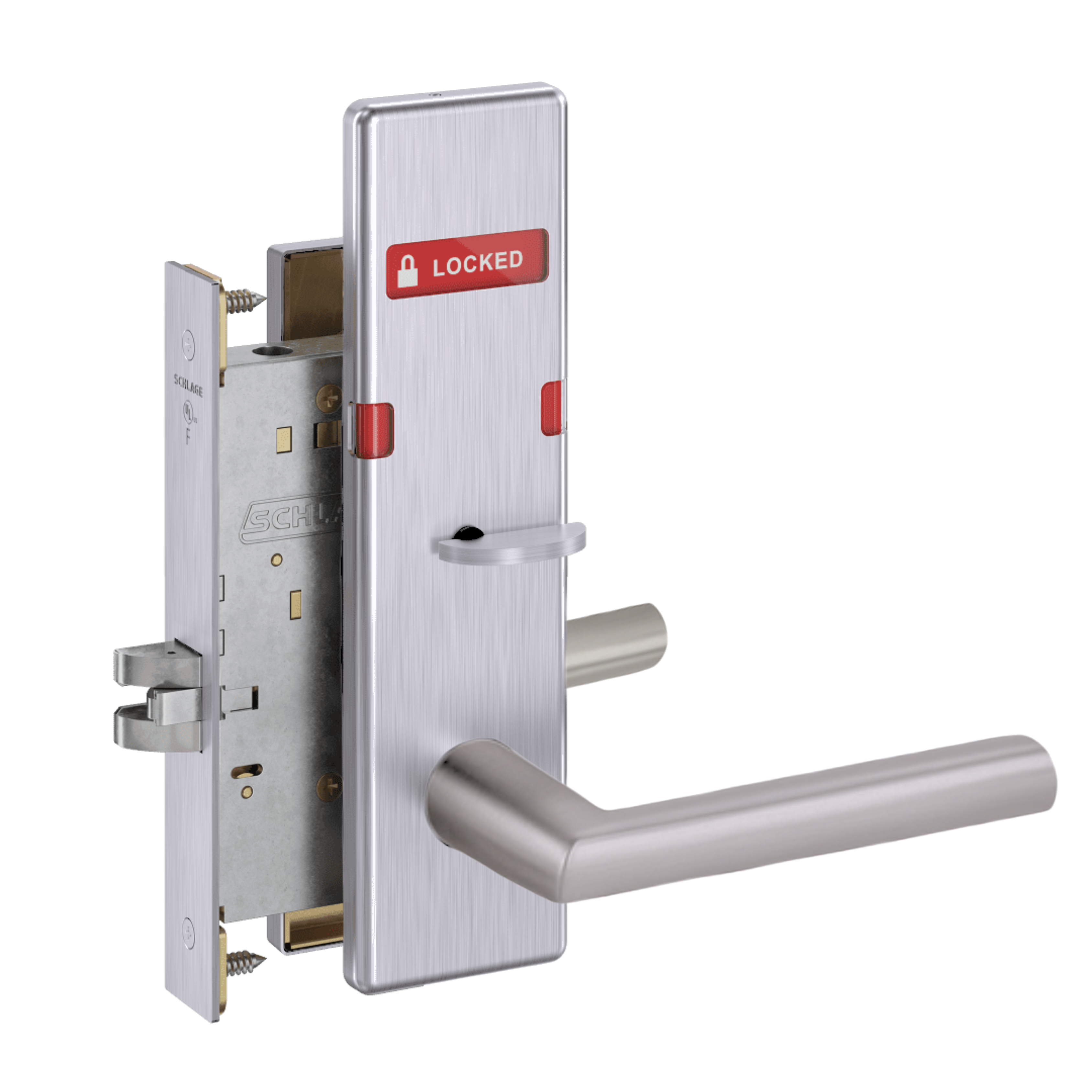 180 degree visibility indicators, advanced motor-driven electrified functions, a universal lock case that supports 10 different functions, and the ability to suite across tubular, exit device, and multipoint locks allow the Schlage L Series to integrate seamlessly into any environment.