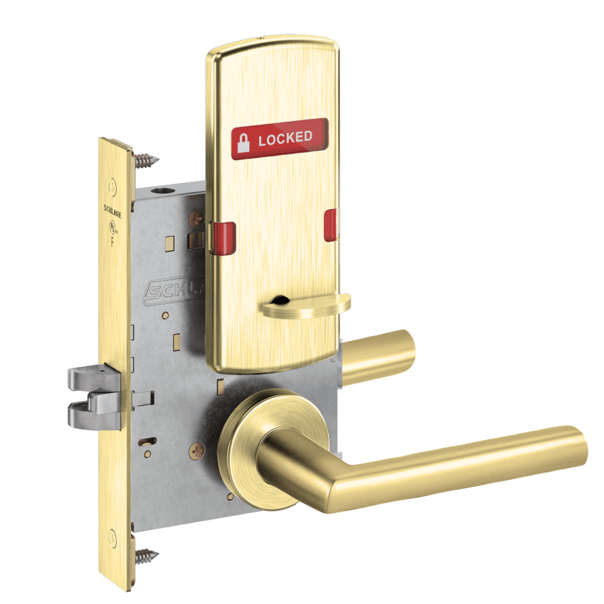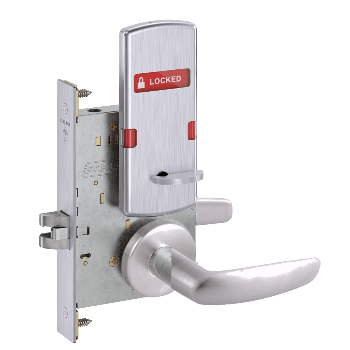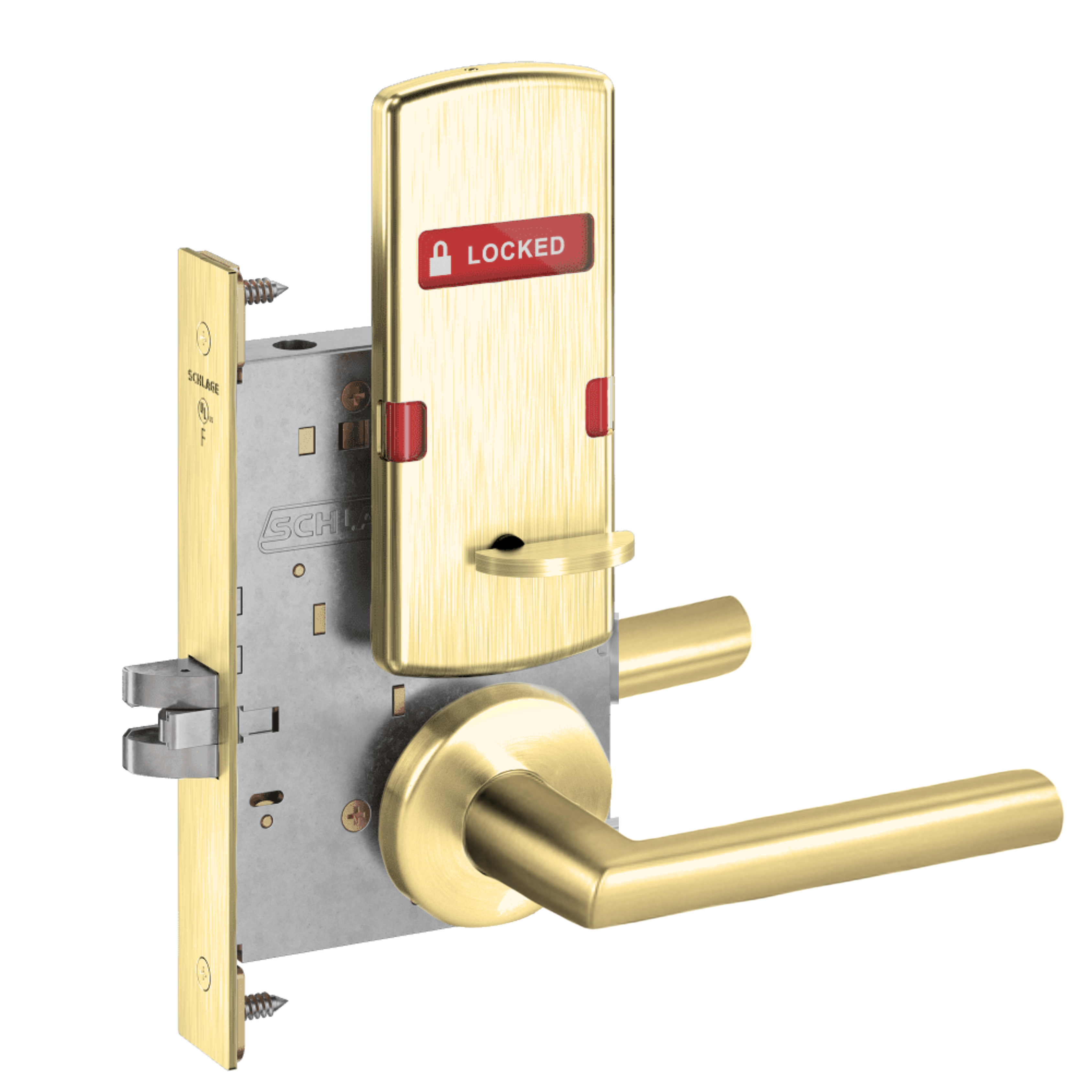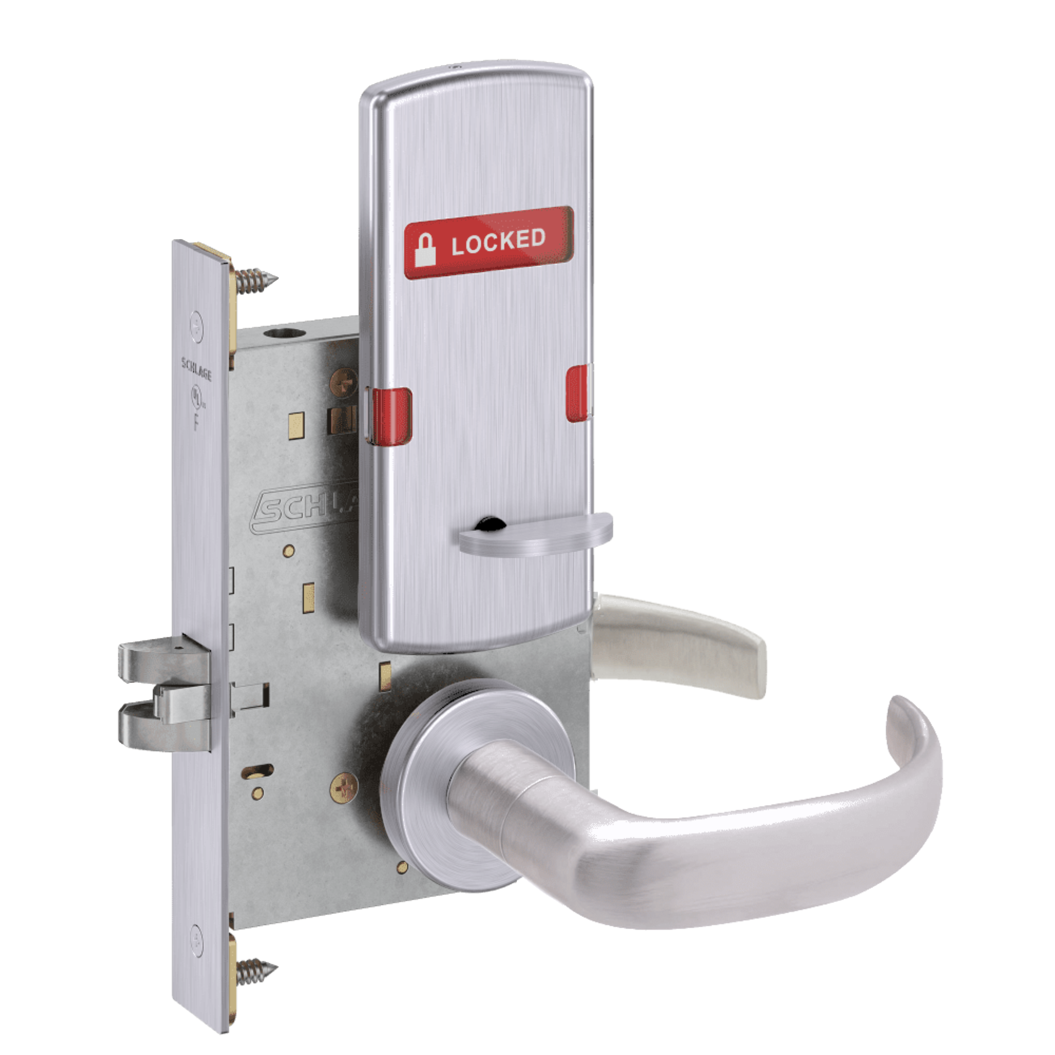 180 degree visibility indicators, advanced motor-driven electrified functions, a universal lock case that supports 10 different functions, and the ability to suite across tubular, exit device, and multipoint locks allow the Schlage L Series to integrate seamlessly into any environment.