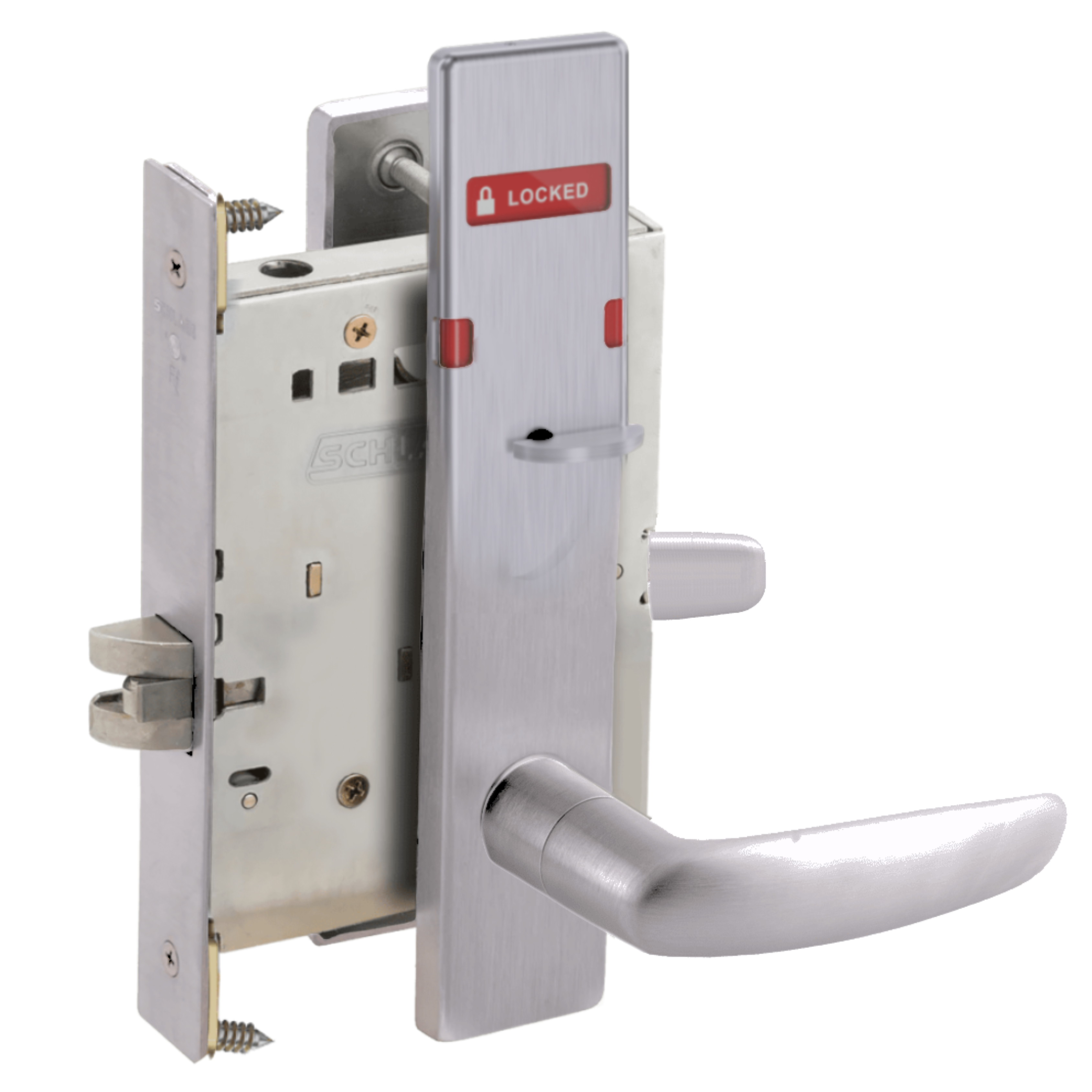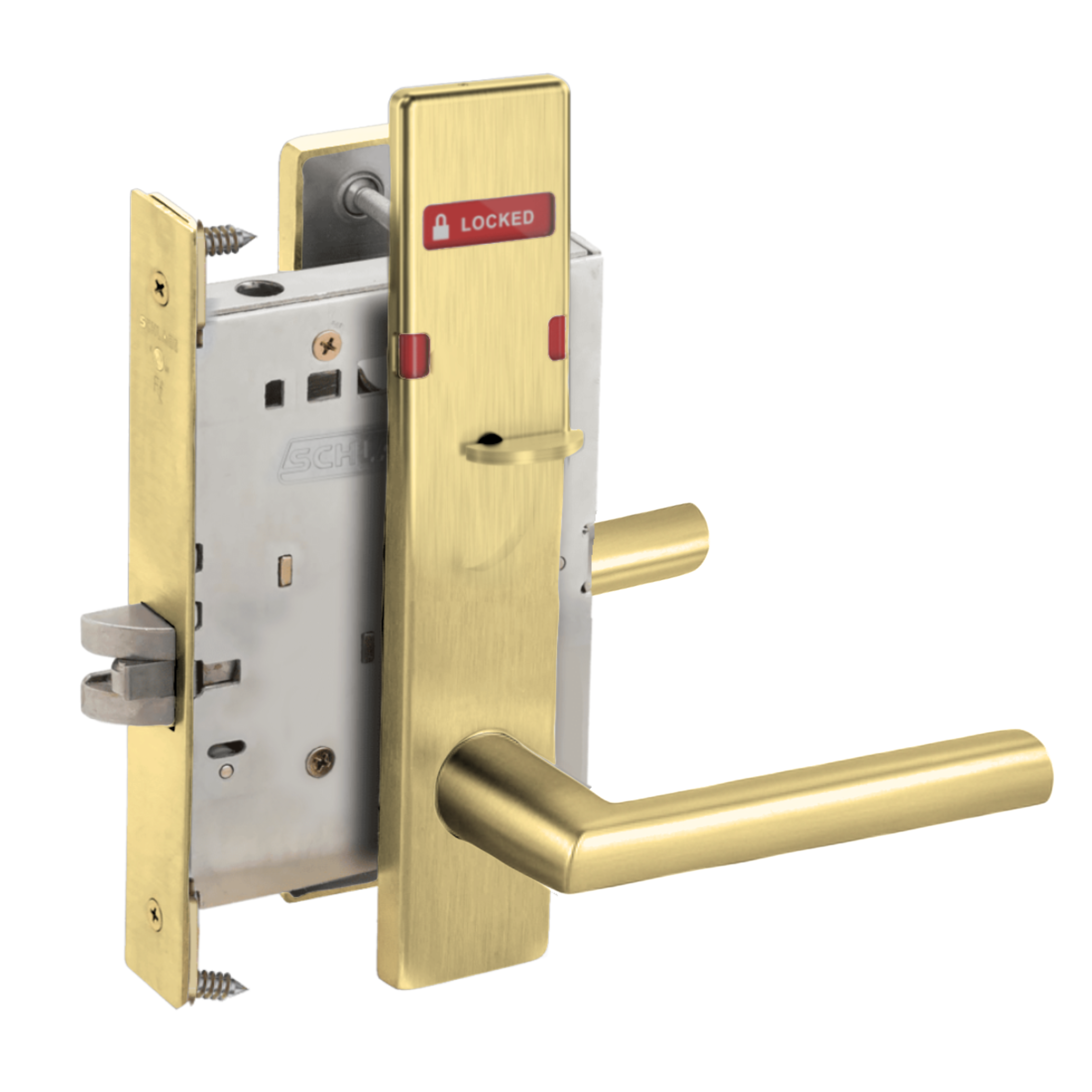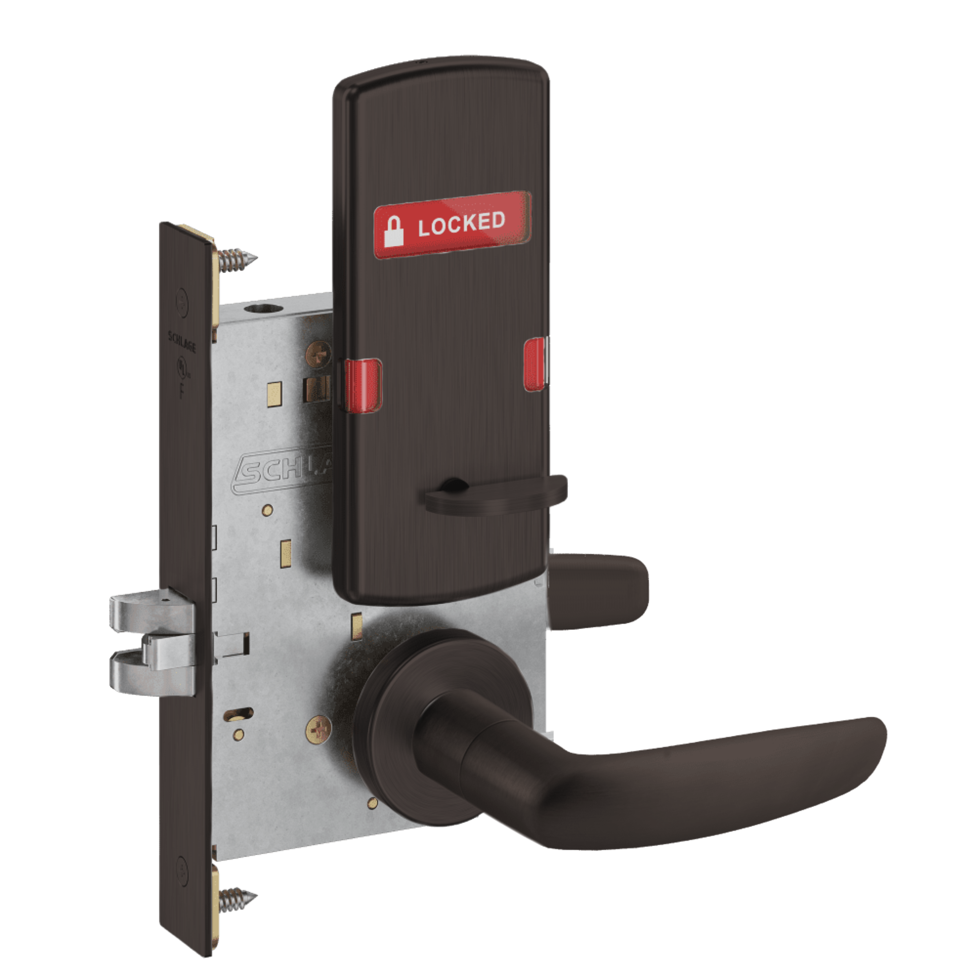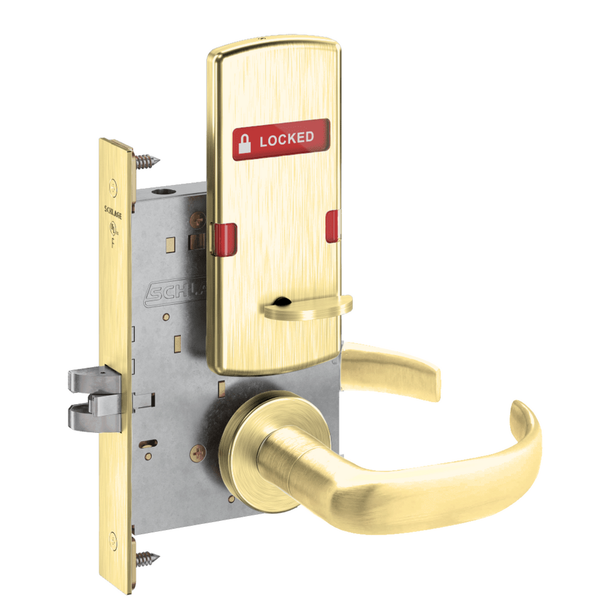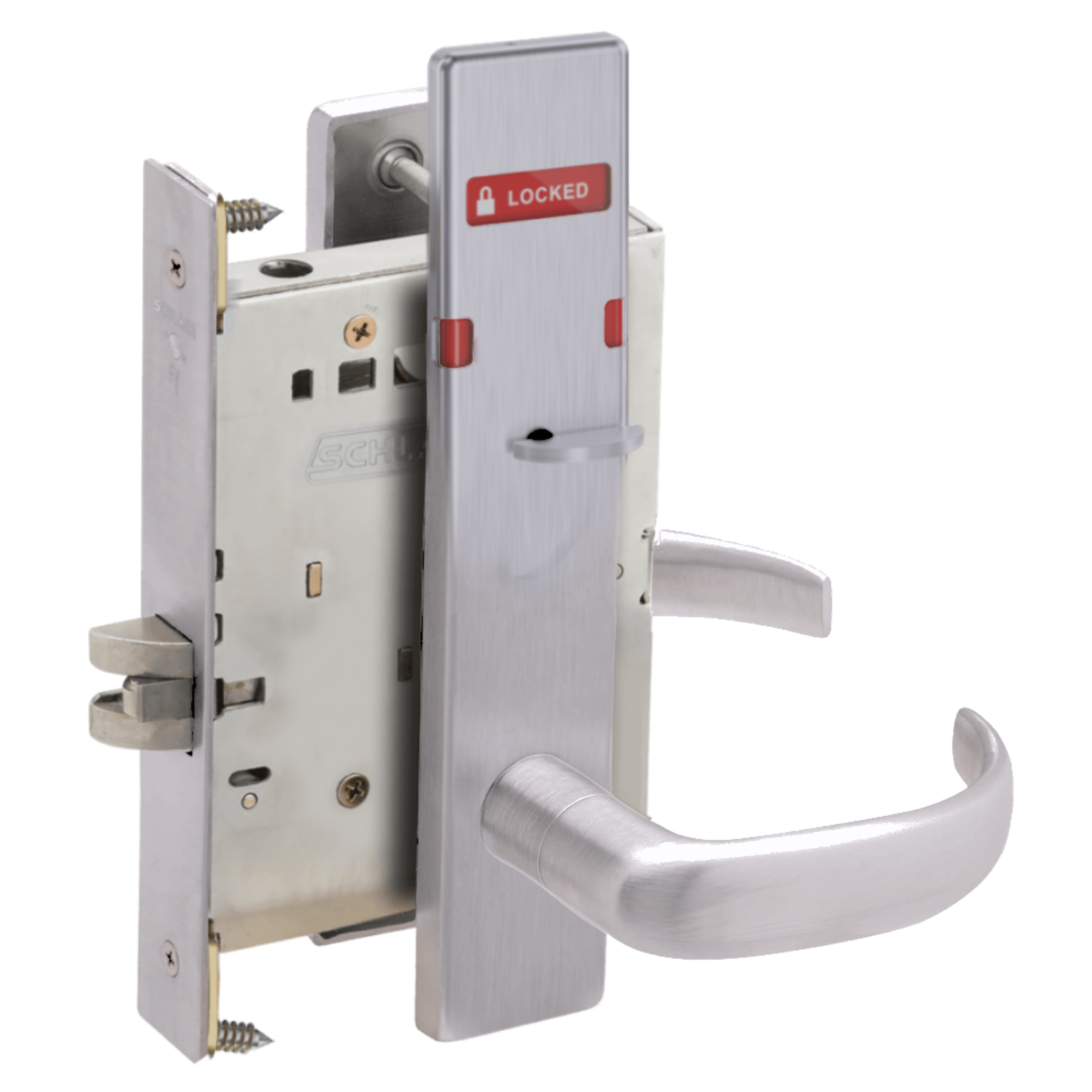 180 degree visibility indicators, advanced motor-driven electrified functions, a universal lock case that supports 10 different functions, and the ability to suite across tubular, exit device, and multipoint locks allow the Schlage L Series to integrate seamlessly into any environment.