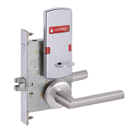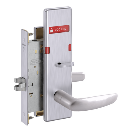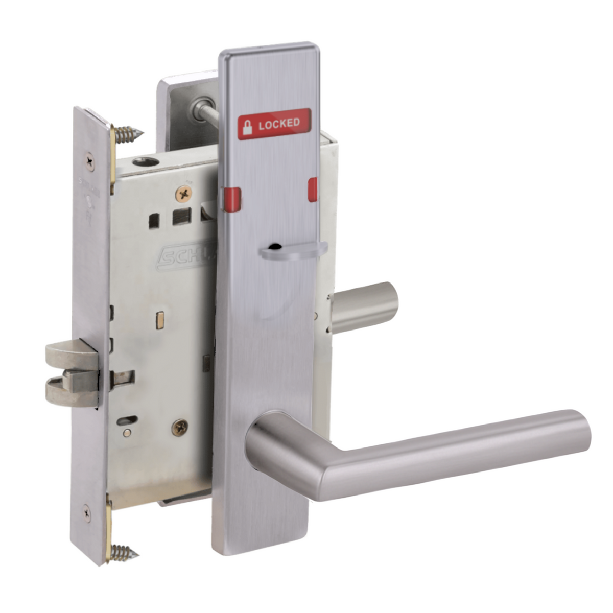 Schlage L9040 - Grade 1 Bed Bathroom Privacy Mortise Lock, Non-Keyed, Interior Indicator "LOCKED/UNLOCKED"