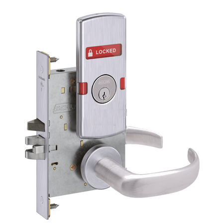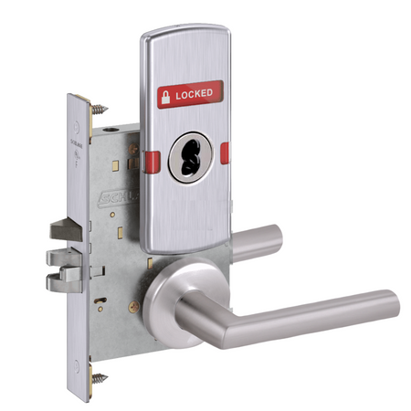 Schlage L9050 - Entrance/Office Mortise Lock - Grade 1 Non-Deadbolt Function Single Cylinder Keyed Lever Lock, Interior Indicator Displays "Locked/Unlocked"