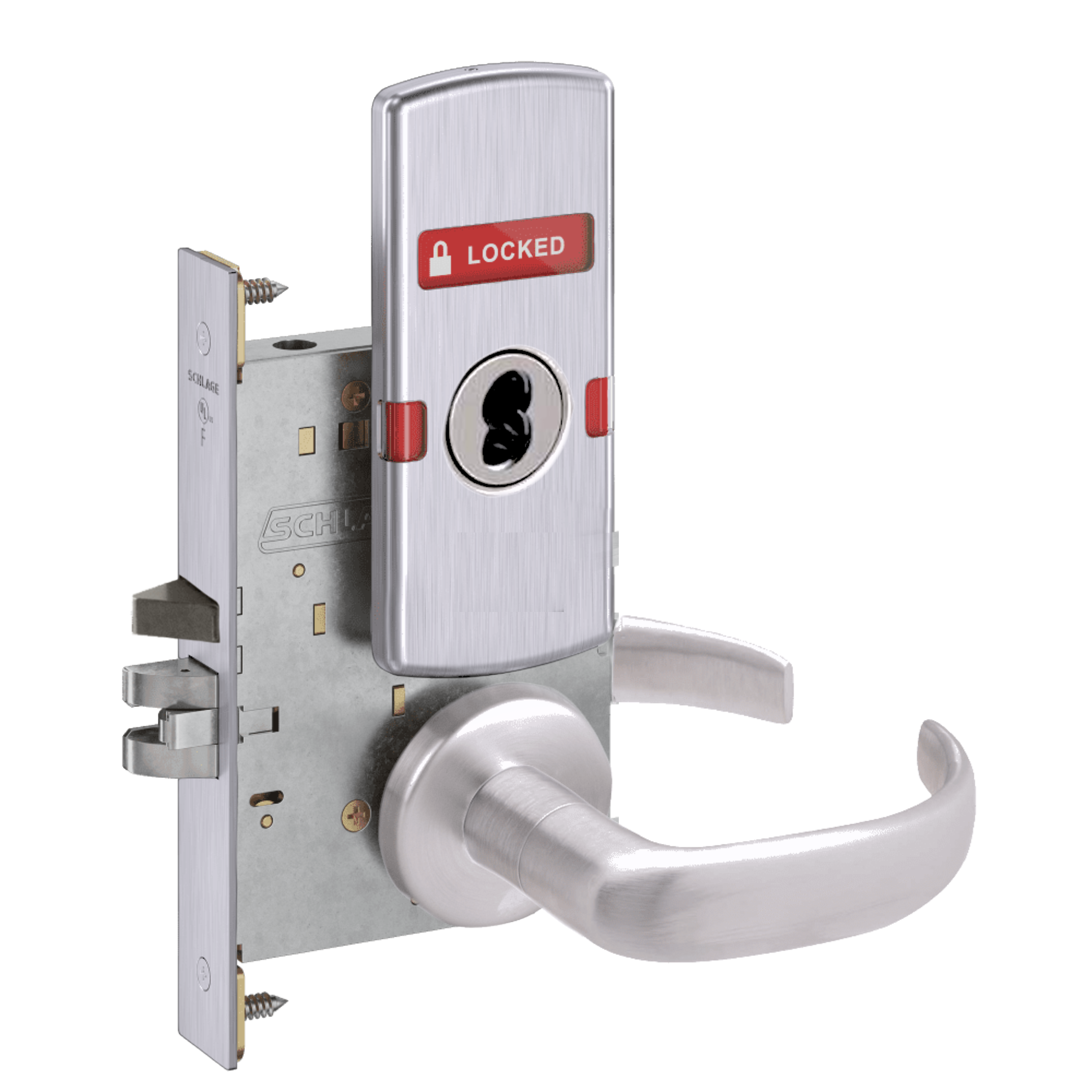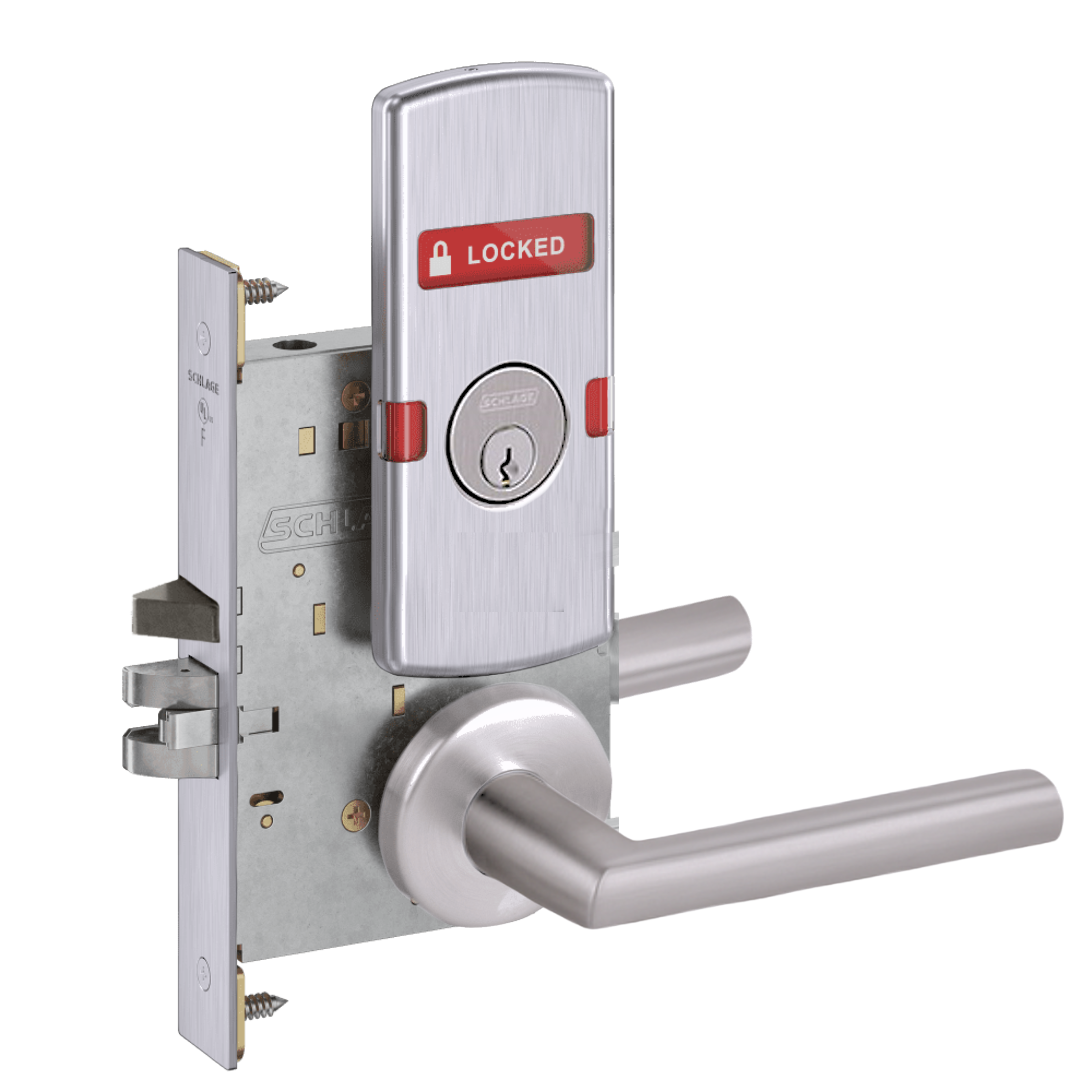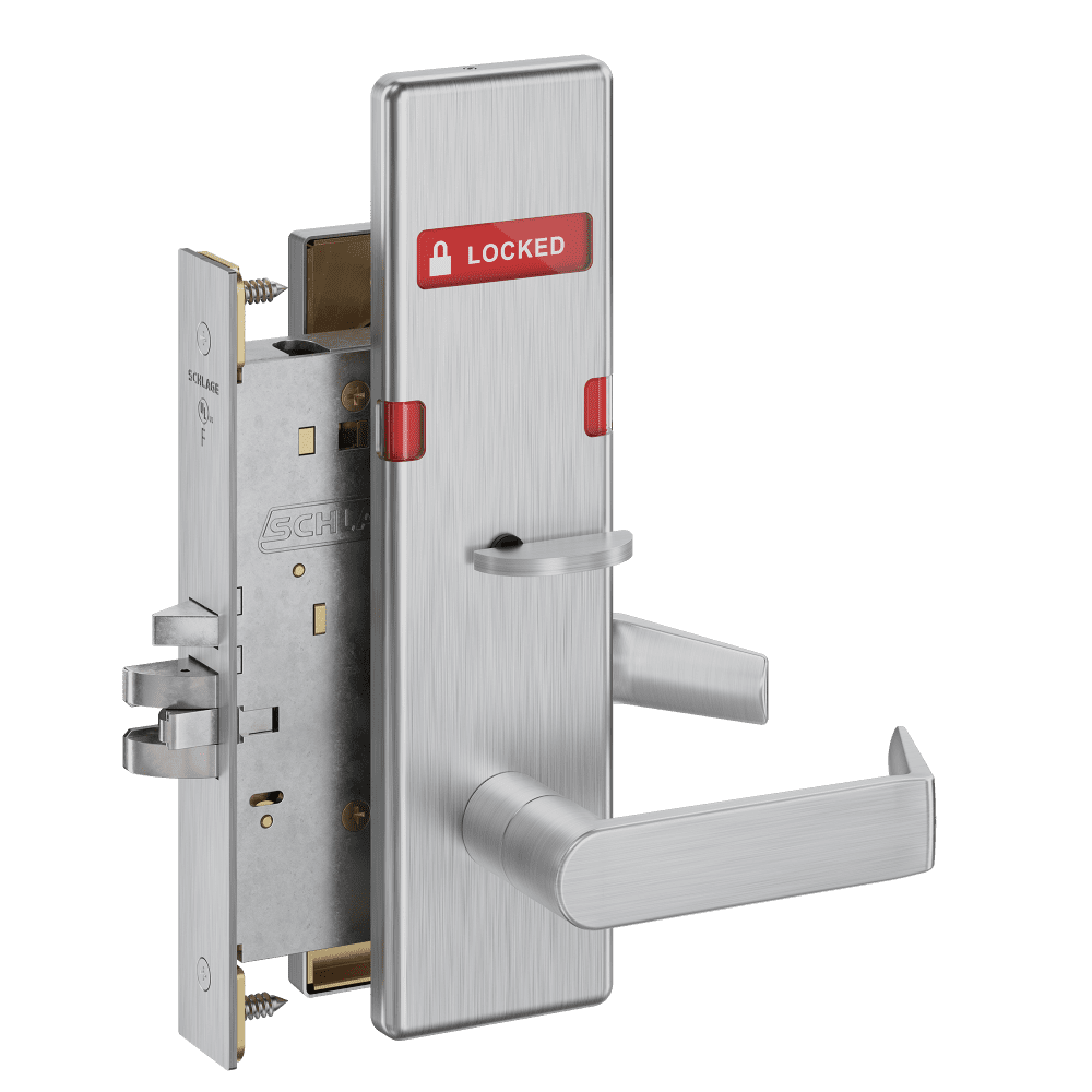 180 degree visibility indicators, advanced motor-driven electrified functions, a universal lock case that supports 10 different functions, and the ability to suite across tubular, exit device, and multipoint locks allow the Schlage L Series to integrate seamlessly into any environment.
