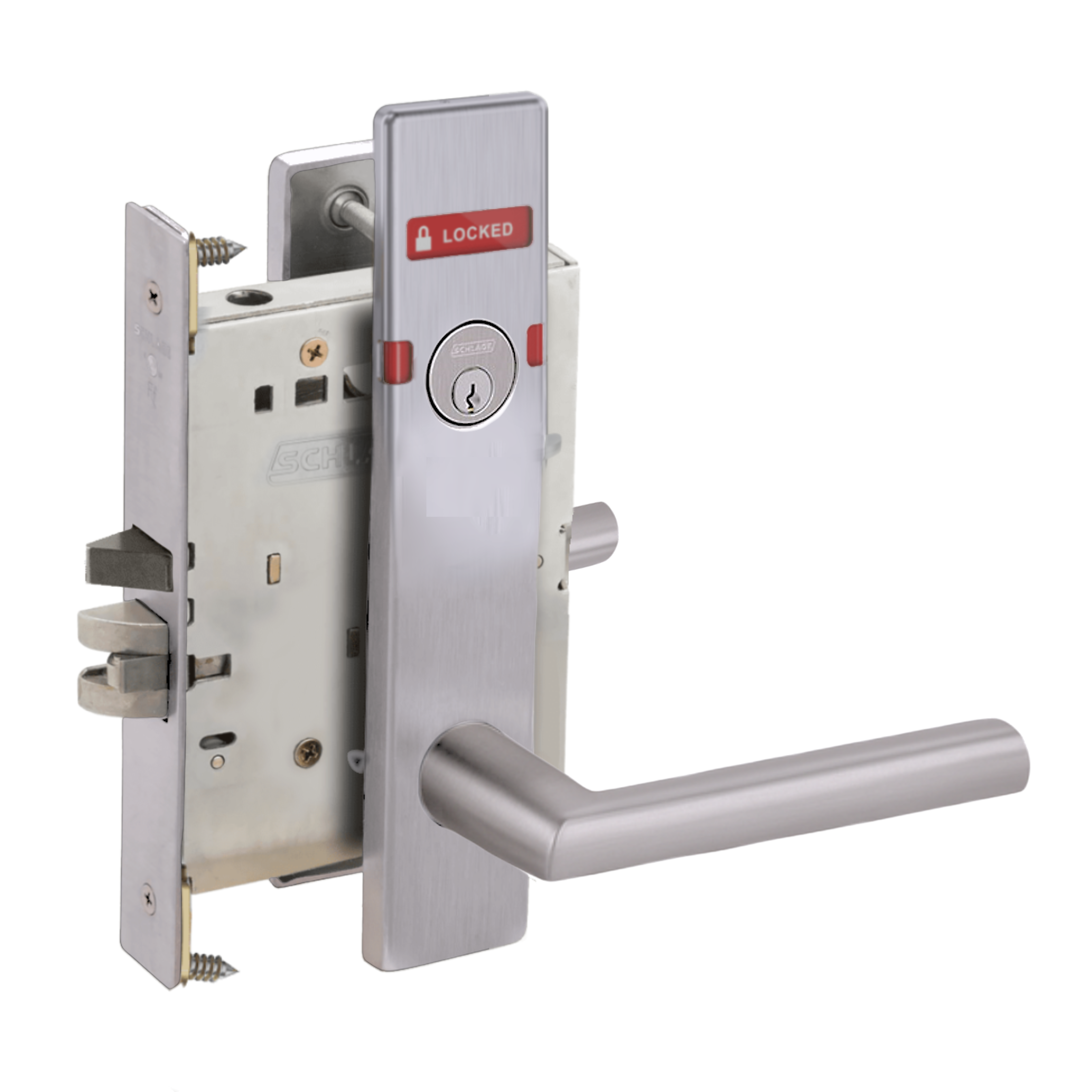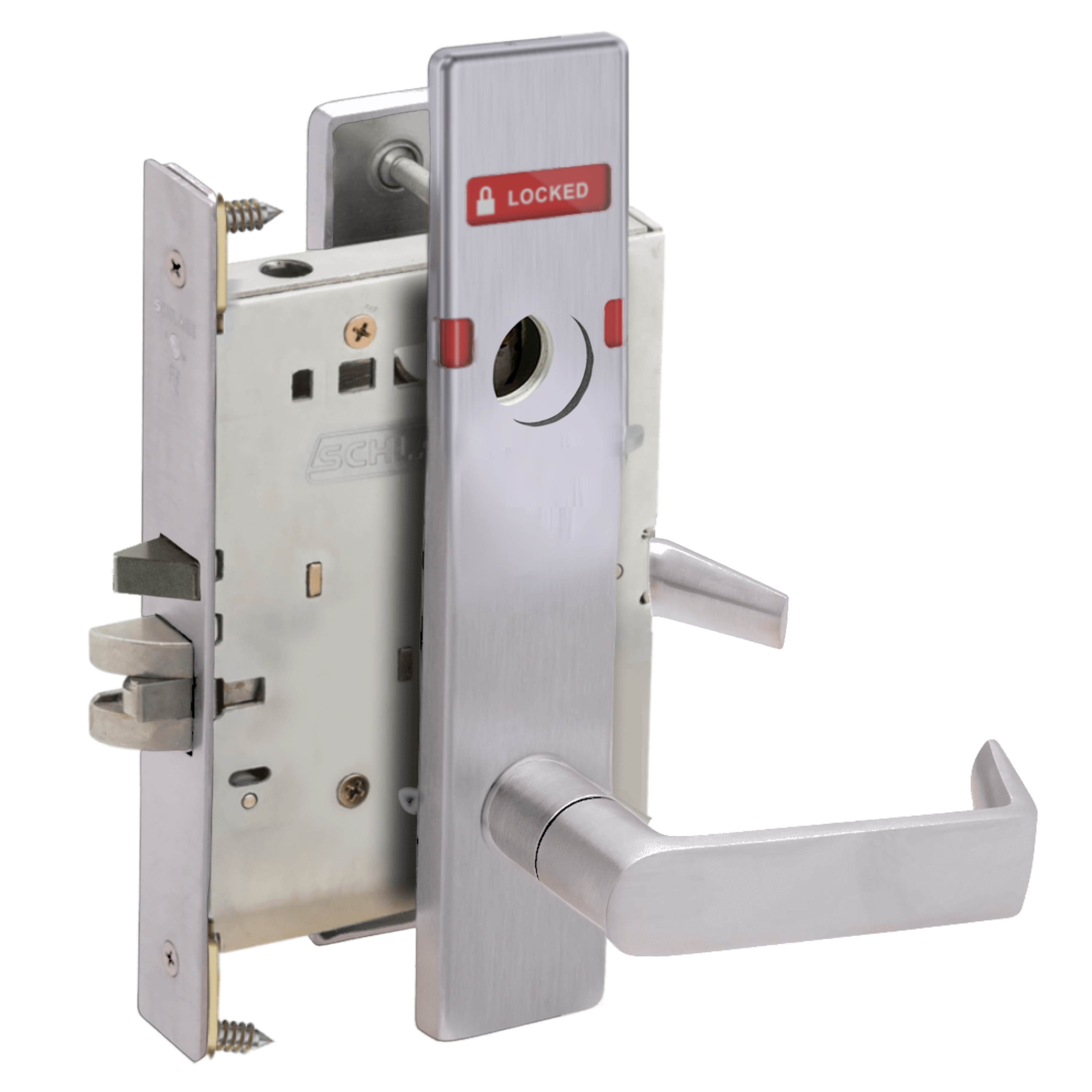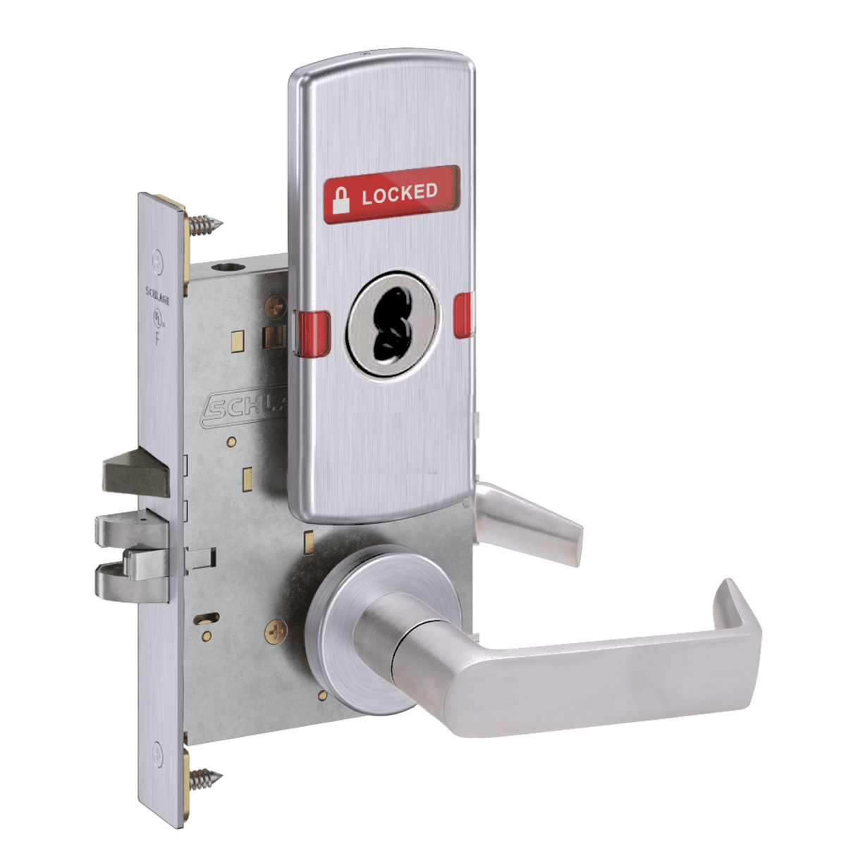 180 degree visibility indicators, advanced motor-driven electrified functions, a universal lock case that supports 10 different functions, and the ability to suite across tubular, exit device, and multipoint locks allow the Schlage L Series to integrate seamlessly into any environment.