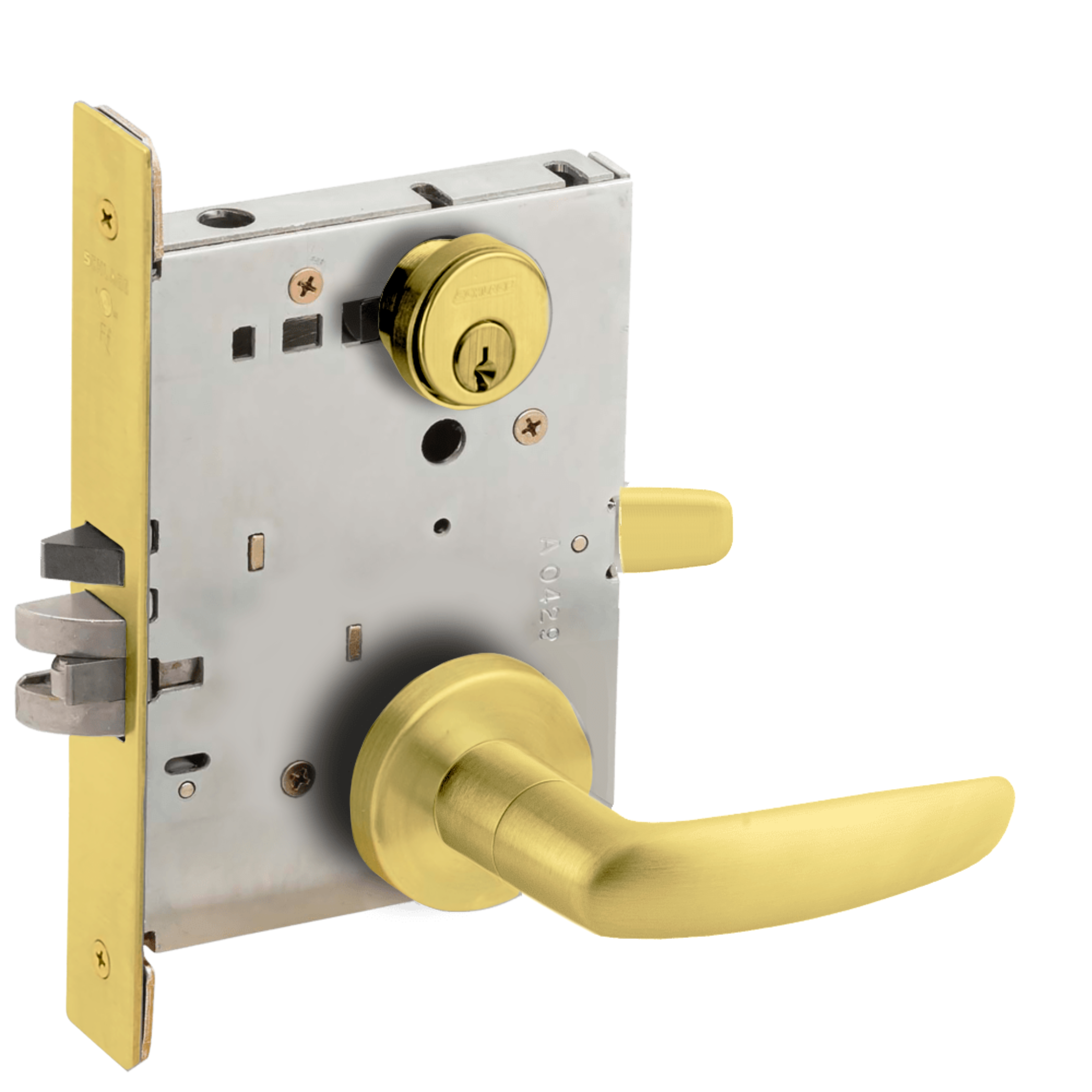 606 - Satin Brass / L - Less Conventional Cylinder / 07 Lever with L Escutcheon