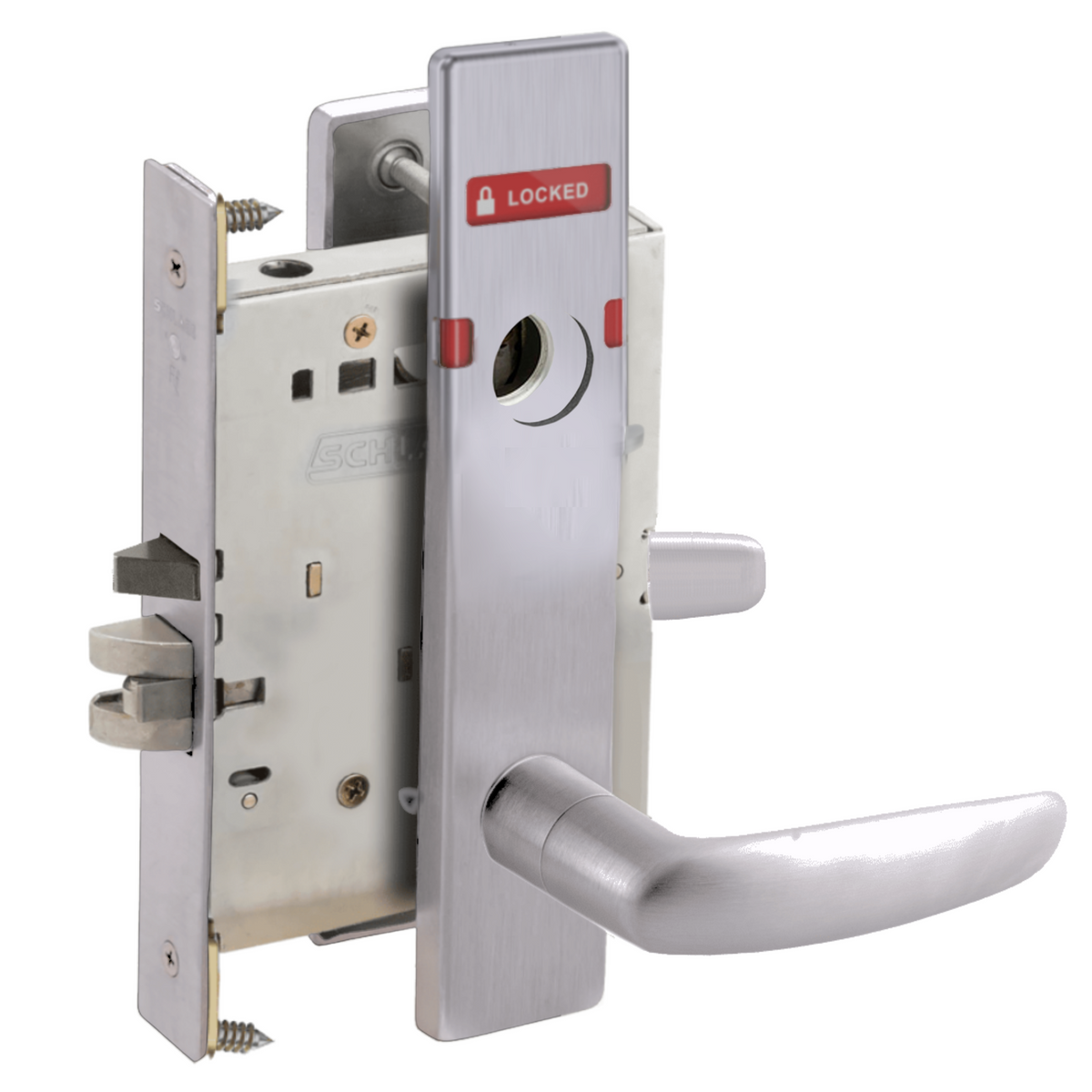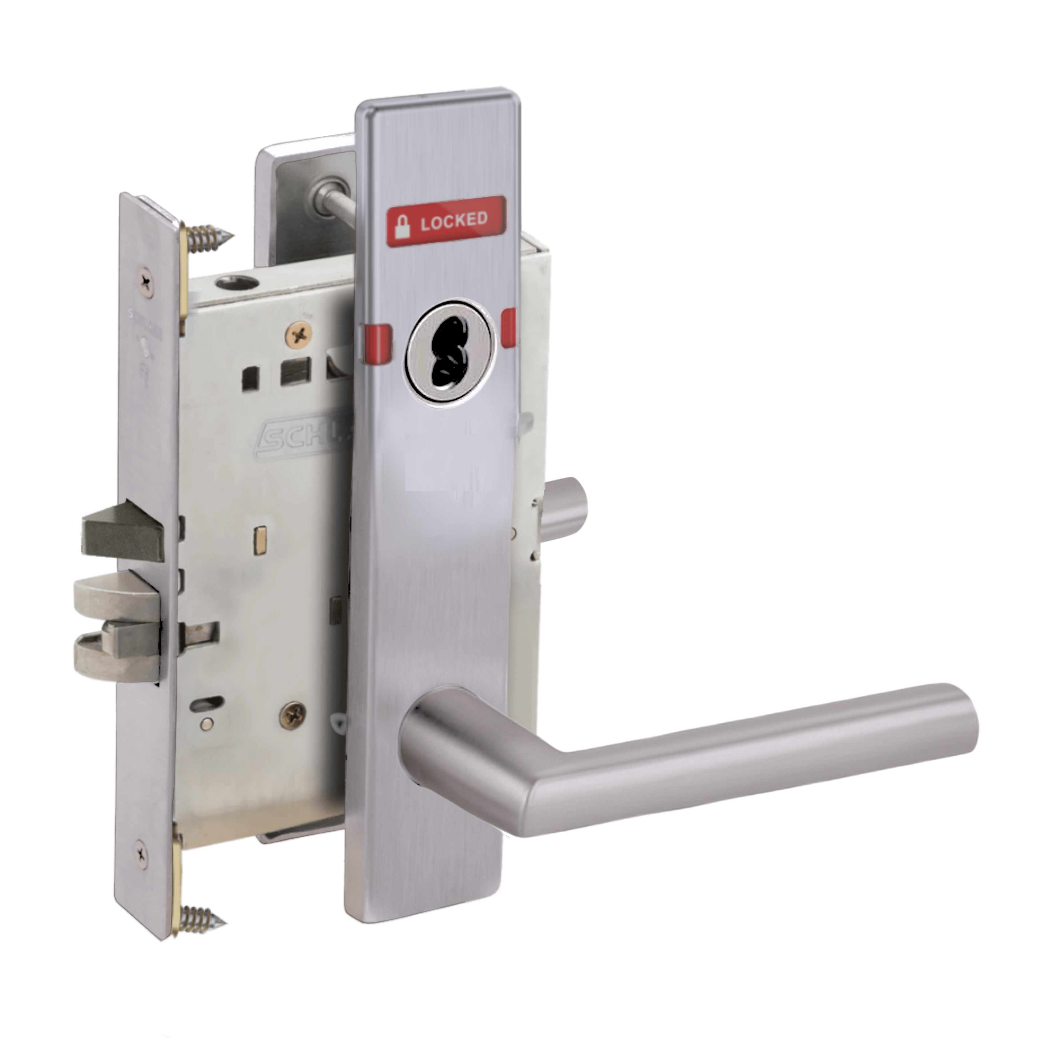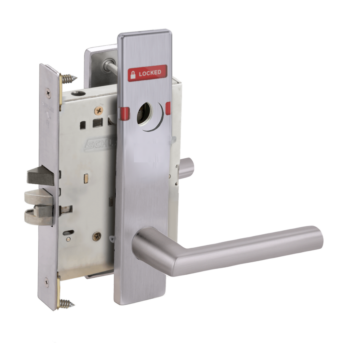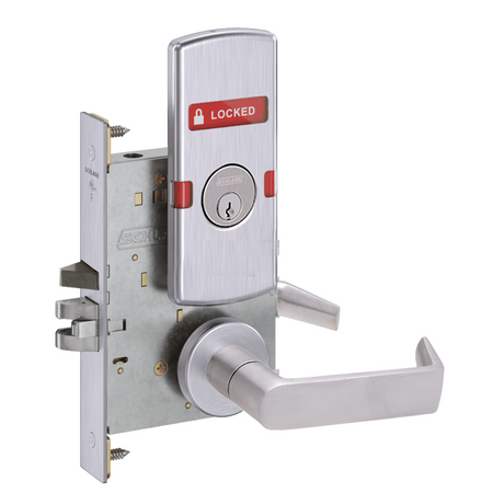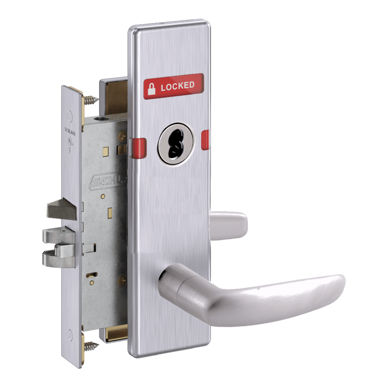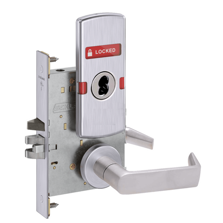 Schlage L9056 - Entrance/Office Mortise Lock With Automatic Unlocking- Grade 1 Non-Deadbolt Function, Single Cylinder Keyed, Interior Indicator Displays "Locked/Unlocked"