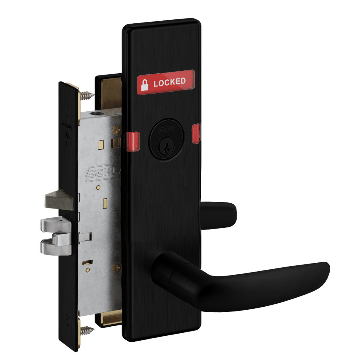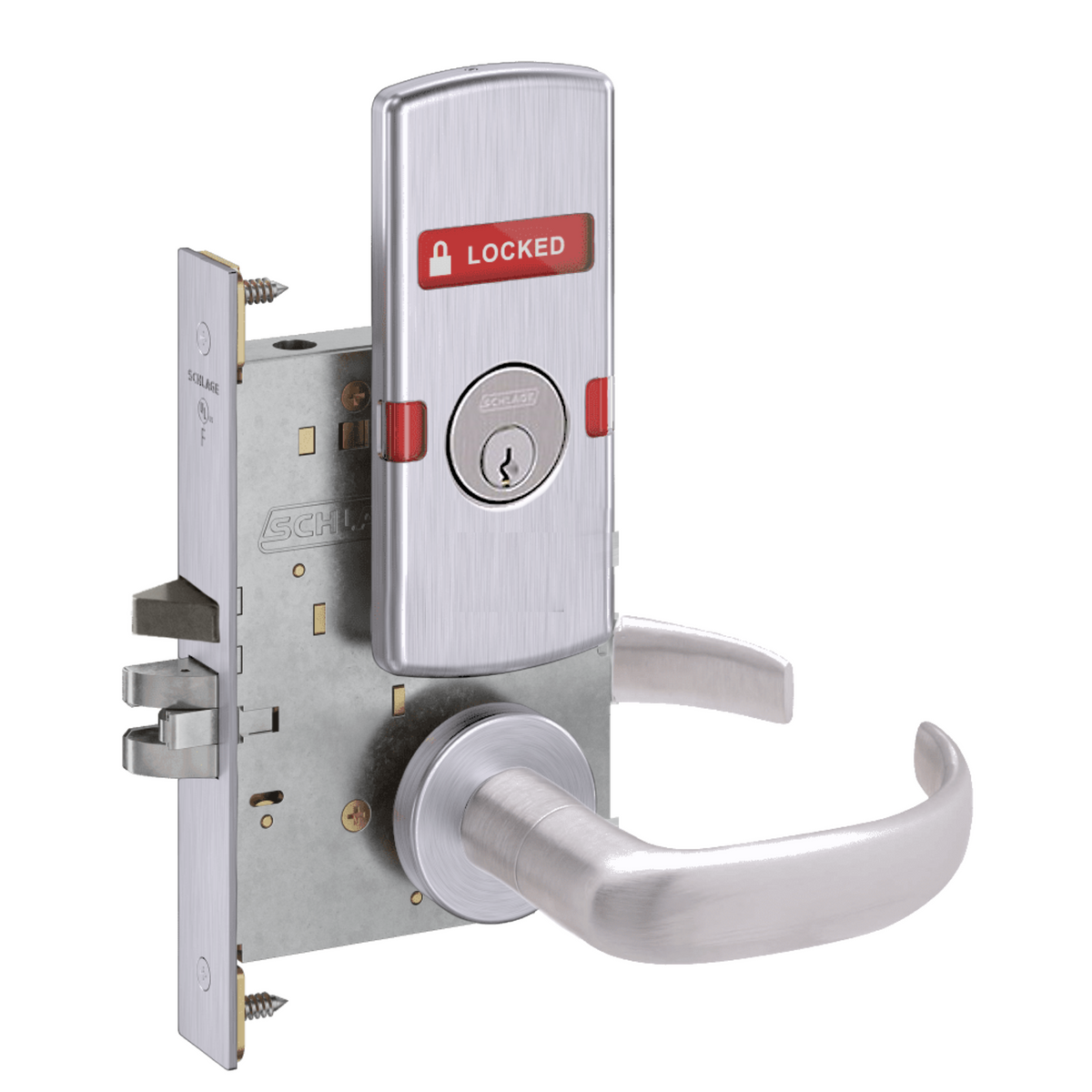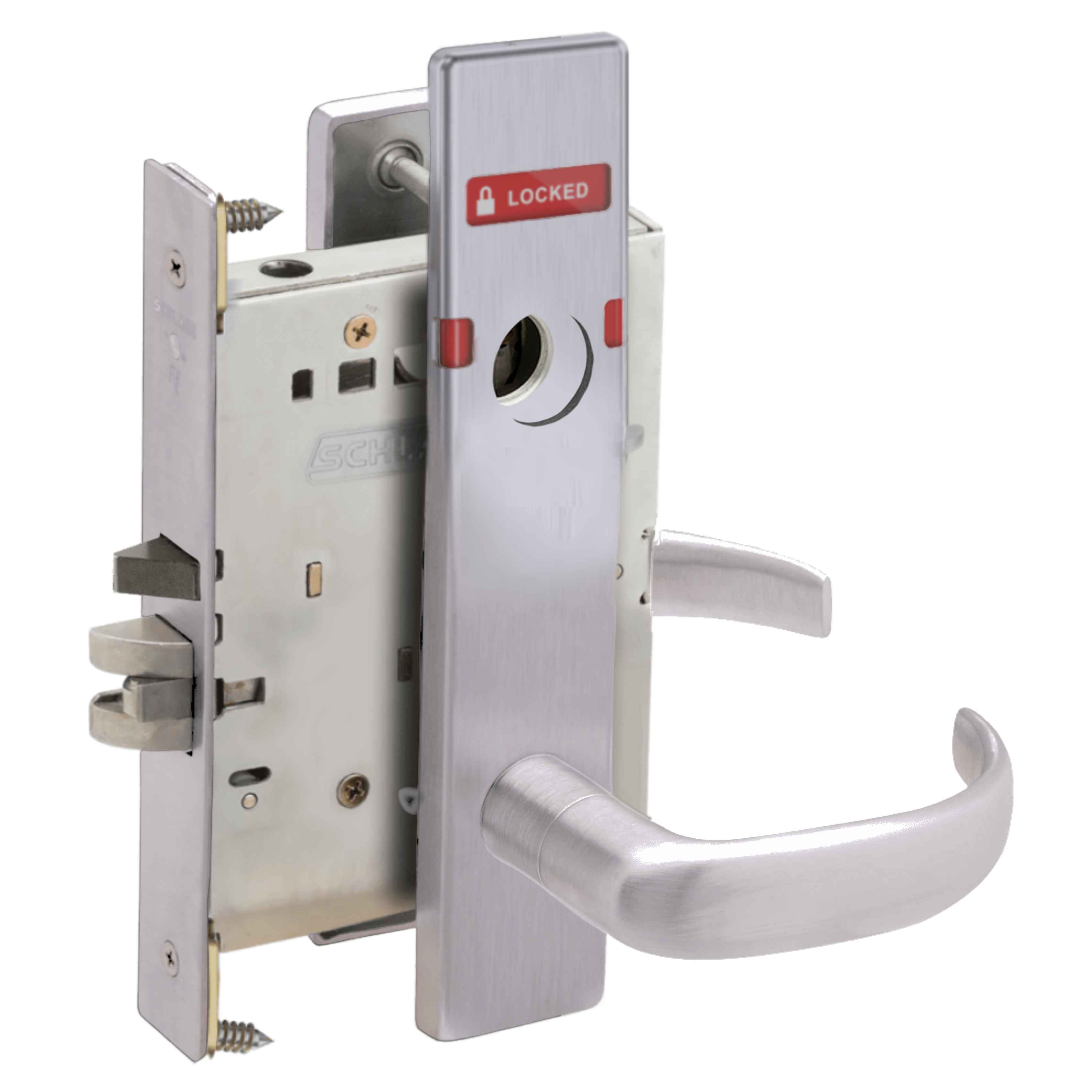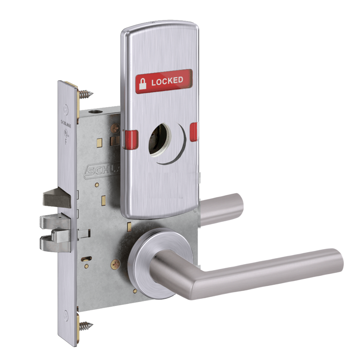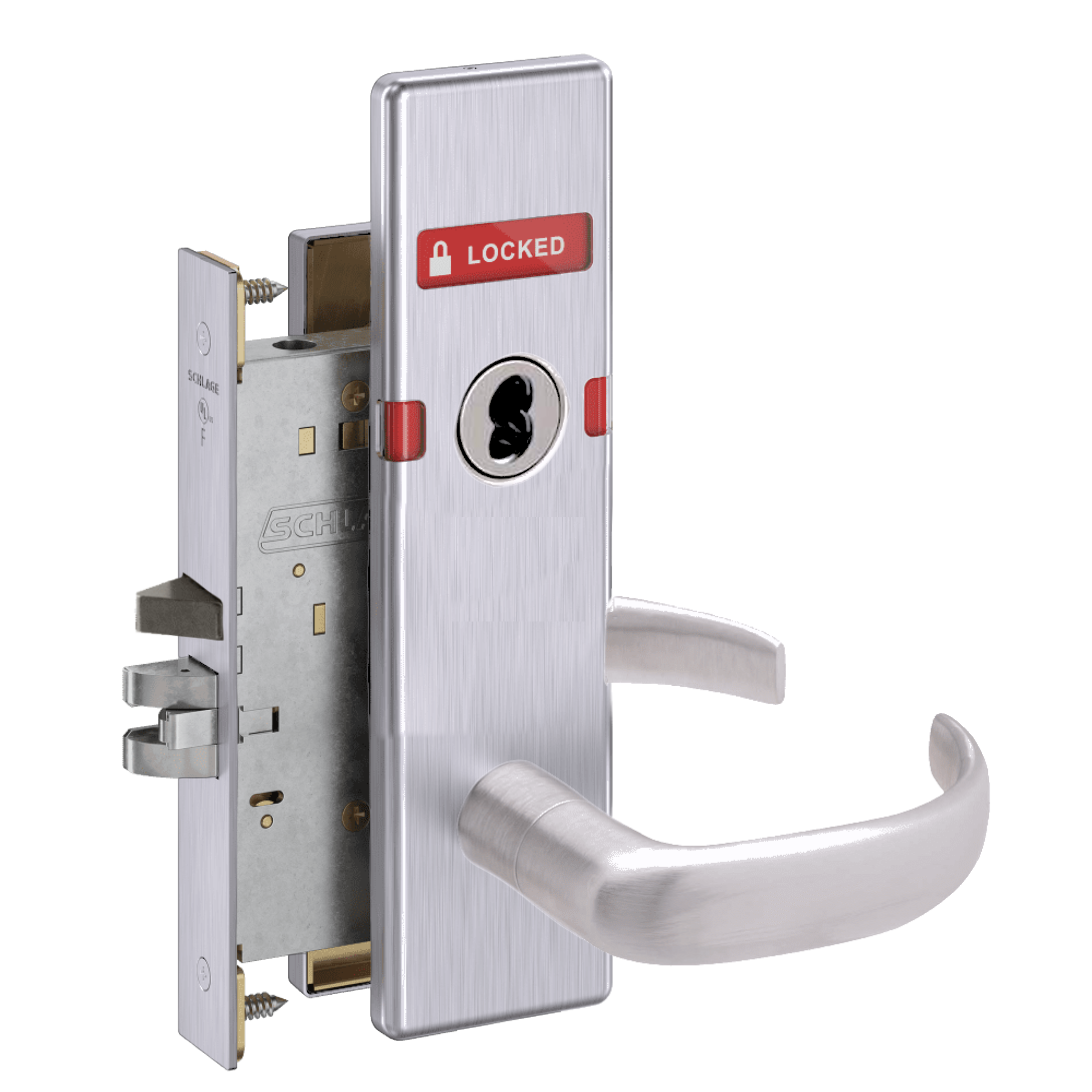 180 degree visibility indicators, advanced motor-driven electrified functions, a universal lock case that supports 10 different functions, and the ability to suite across tubular, exit device, and multipoint locks allow the Schlage L Series to integrate seamlessly into any environment.