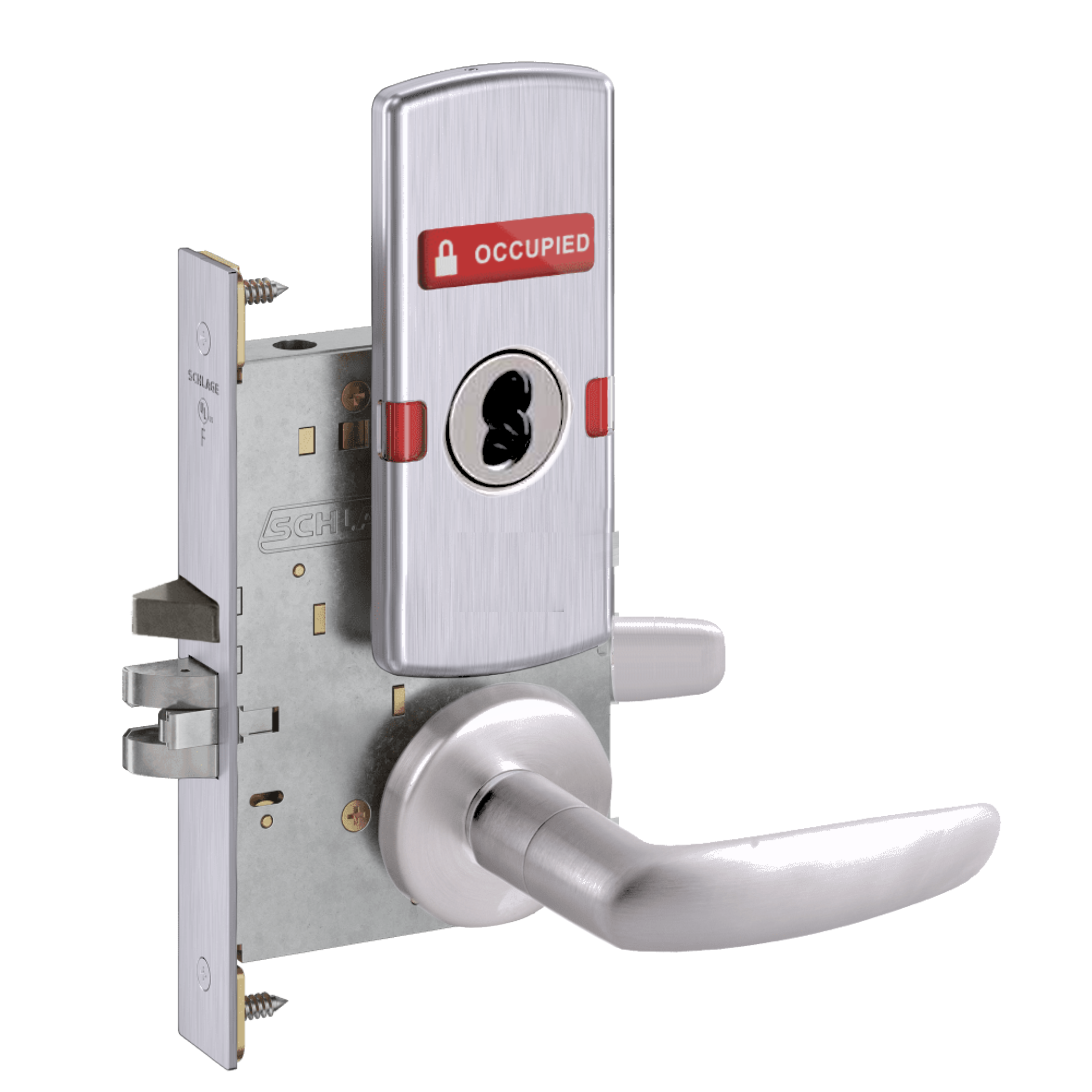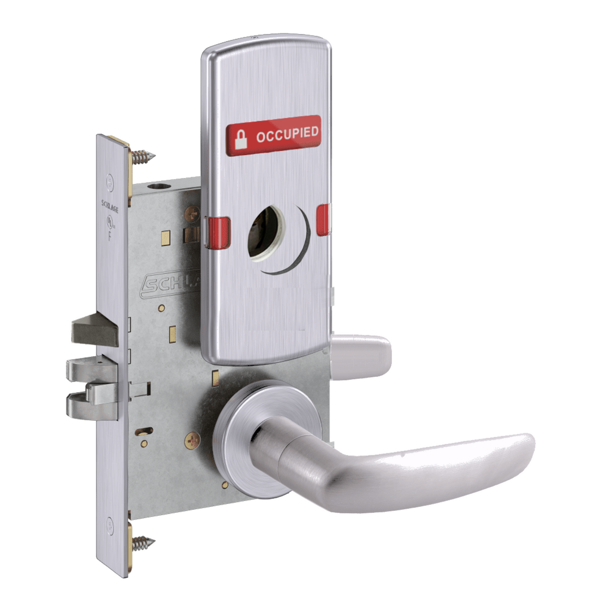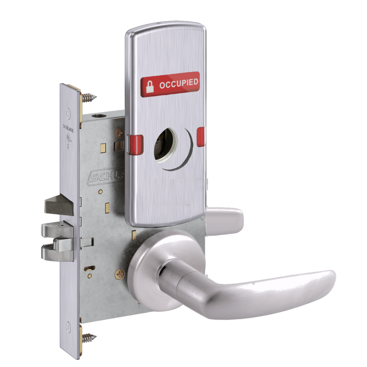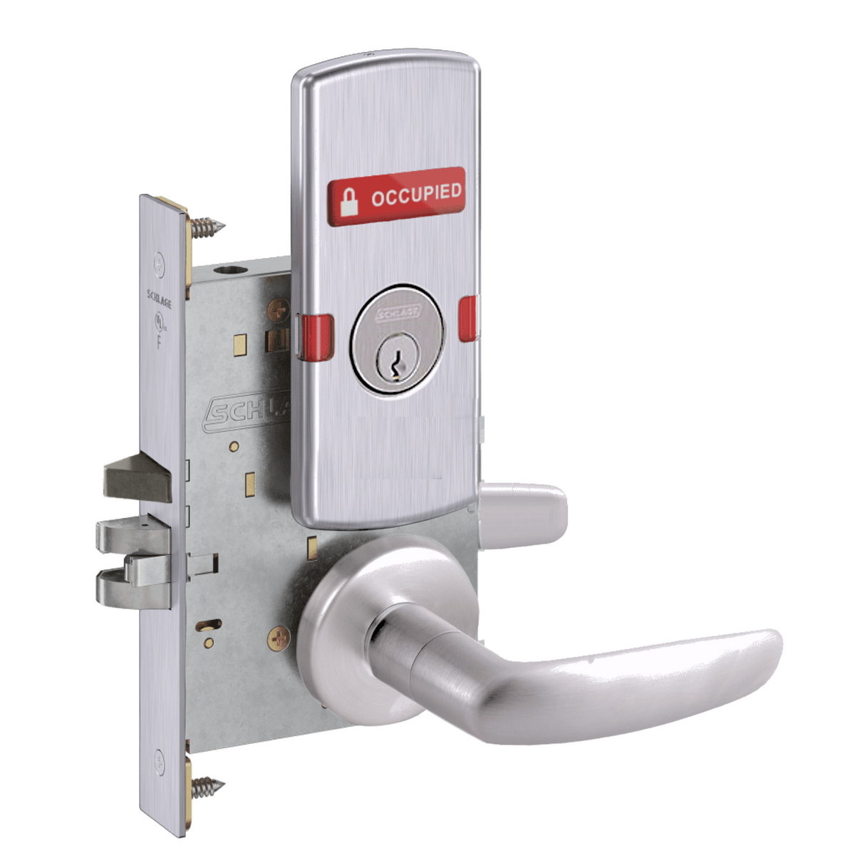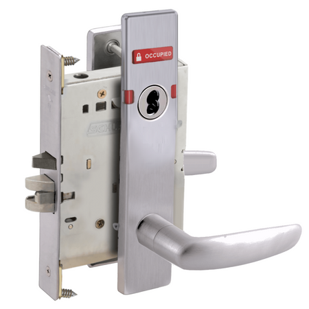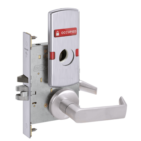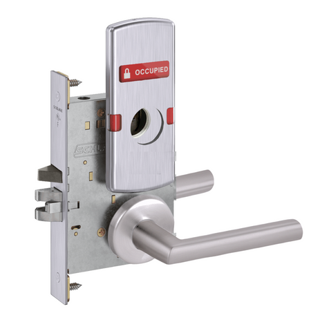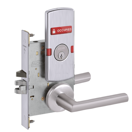 Schlage L9056 - Entrance/Office Mortise Lock With Automatic Unlocking- Grade 1 Non-Deadbolt Function, Single Cylinder Keyed, Exterior Indicator "Vacant/Occupied"