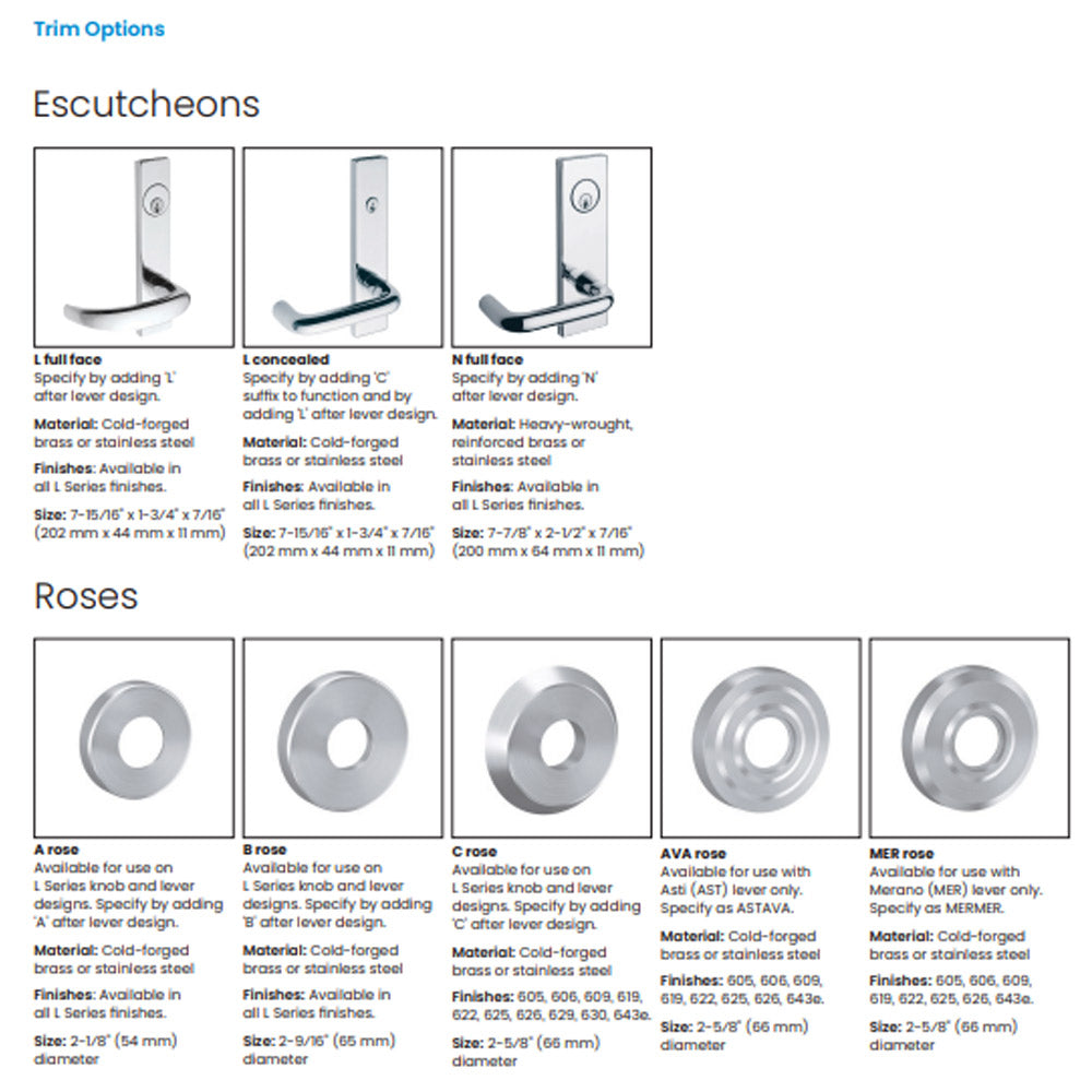 All levers suite with Von Duprin exit devices, along with related L Series products LE, LM9200, LM9300 and LT