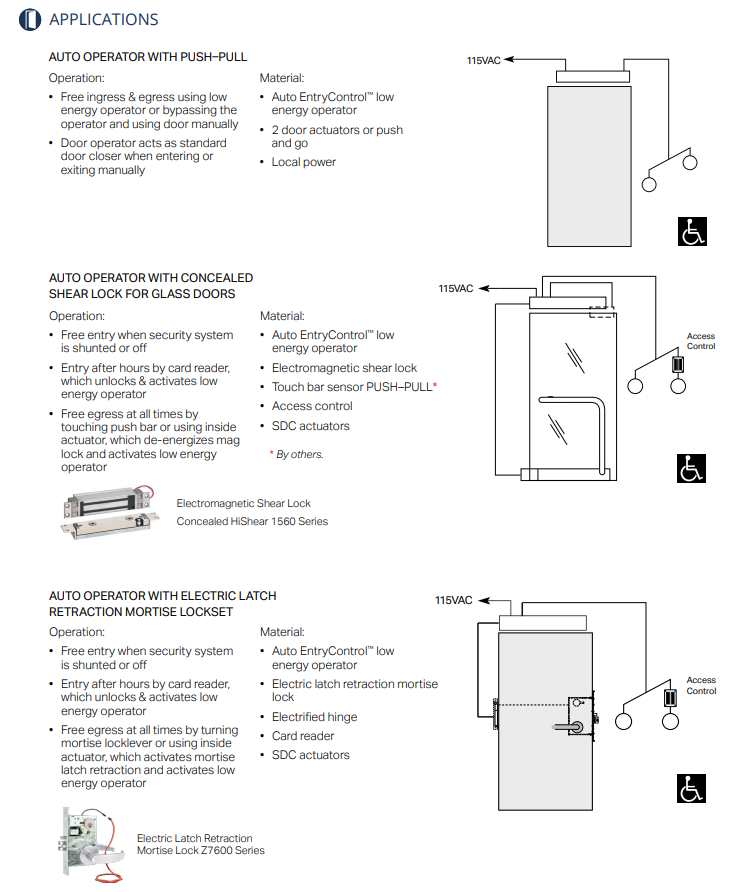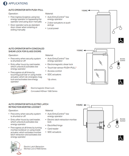 SDC's Auto Entry-Control low-energy swing door operators are designed for applications requiring ADA compliance or user convenience.