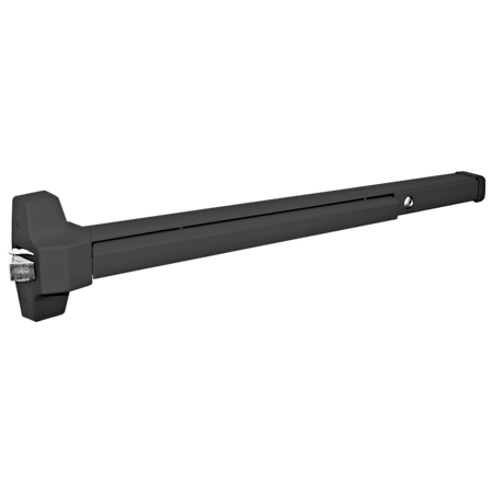The ENFORCER SD-962AR-36A Rim-Type Exit Device, when mounted on the inside of a door to block entry to a protected premises, securely locks the door from outside access while allowing users inside the protected premises to exit. The stainless steel enclosure protects the exit device from abuse, yet easily unlocks the door from the inside by users who require exit. It can be connected to an entry-type lever trim or to any physical locking device on the outside of the door in order to allow entry to authorized personnel.