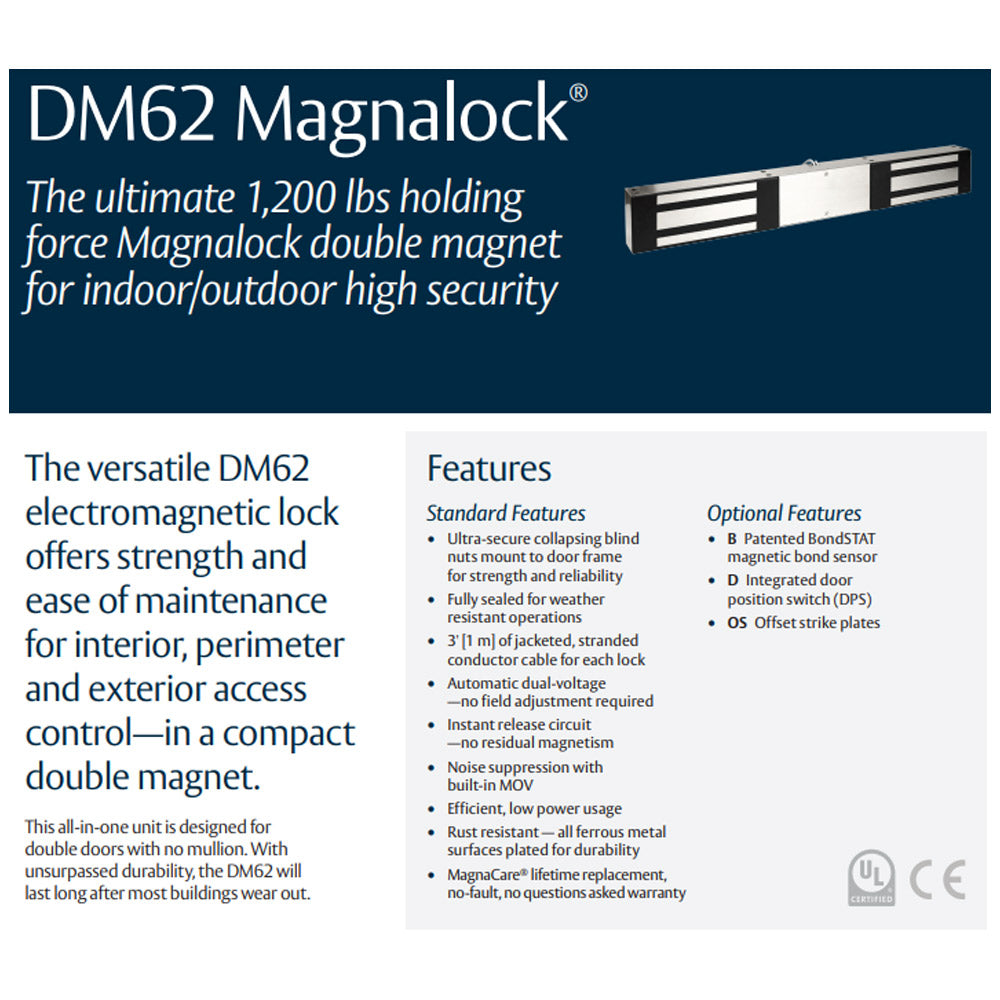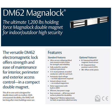 - Lock options include BondSTAT magnetic bond sensor and integrated door position switch