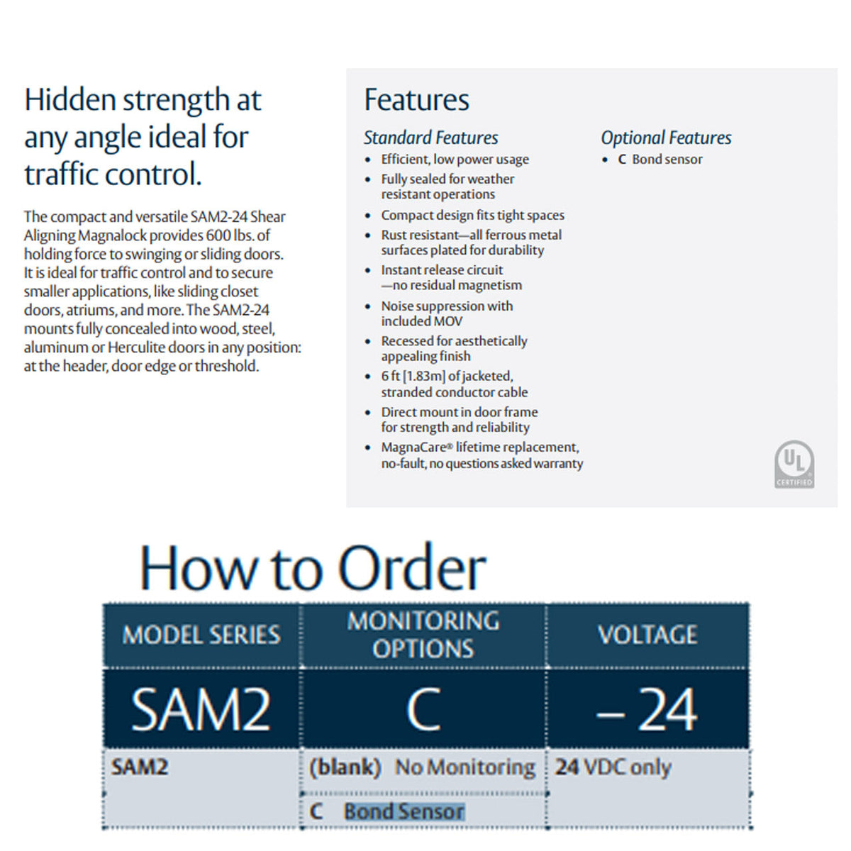 Hidden strength for any application. 1200 lbs. holding force Shear Aligning Magnalock mounts fully concealed into wood, steel or aluminum doors.