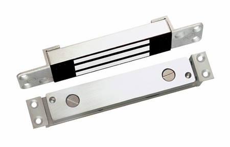 Hidden strength at any angle ideal for traffic control. 600 lbs. holding force Shear Aligning Magnalock mounts fully concealed and is ideal for smaller applications, like cabinet doors and sliding closet doors.